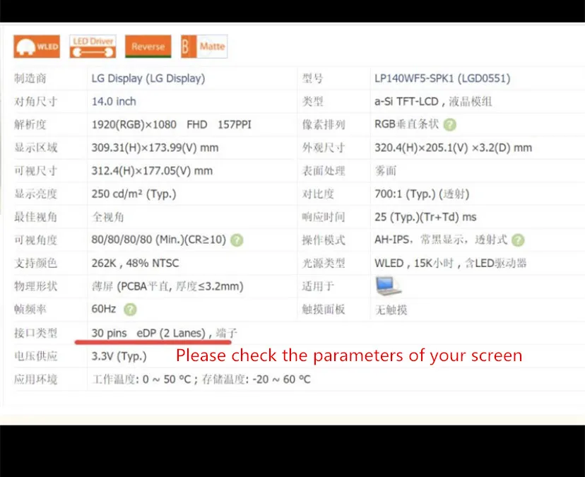Reminder: When you buy this EDP interface, please make sure that these interfaces must be EDP interfaces for the original screen and the substitute screen, and the definitions must be consistent before they can be used!
