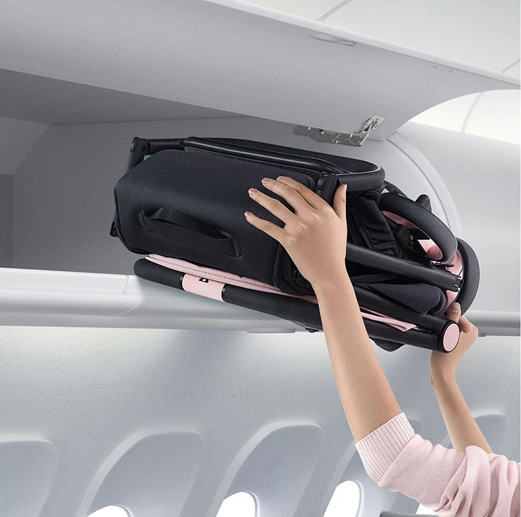 Сложенная коляска маленькая, как посадочная площадка, и с плечевым ремнем desian, ее можно поместить в багажник автомобиля, на самолете или в метро