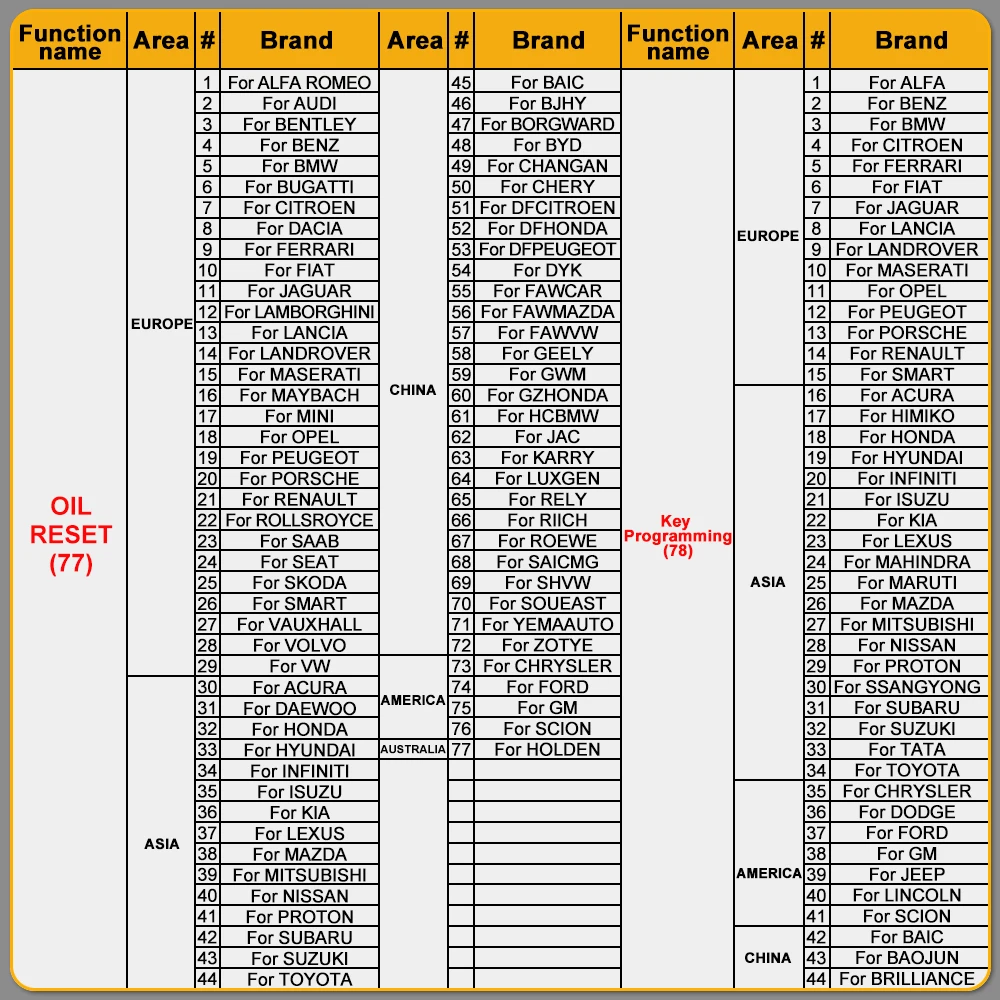 2. Поддержка 181 автомобильных брендов, американских автомобилей (15), европейских автомобилей (34), азиатских автомобилей (21, включая 2 малазийских автомобильных бренда, 3 индийских автомобильных бренда), китайские автомобили (109), австралийские автомобили (2)