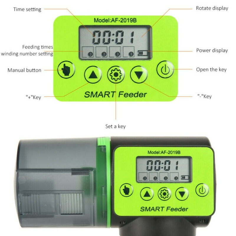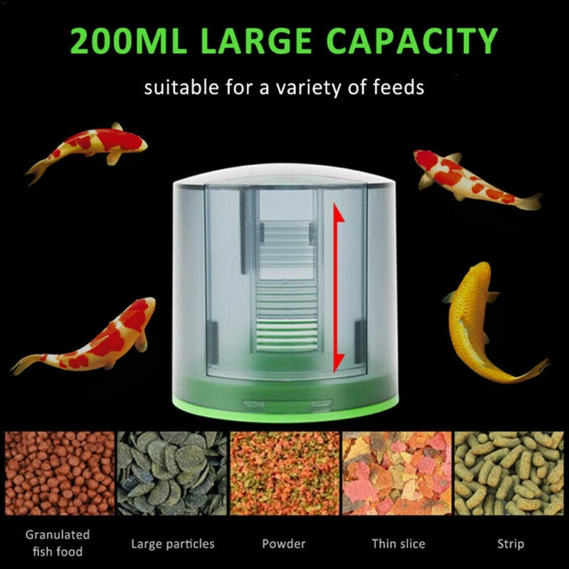 [Большая пищевая Емкость]: с емкостью 200 мл, его большой размер держит достаточно пищи, чтобы держать вашу рыбу в жире, пока вы находитесь вдали. Дверь Подачи в стиле люка полностью регулируется