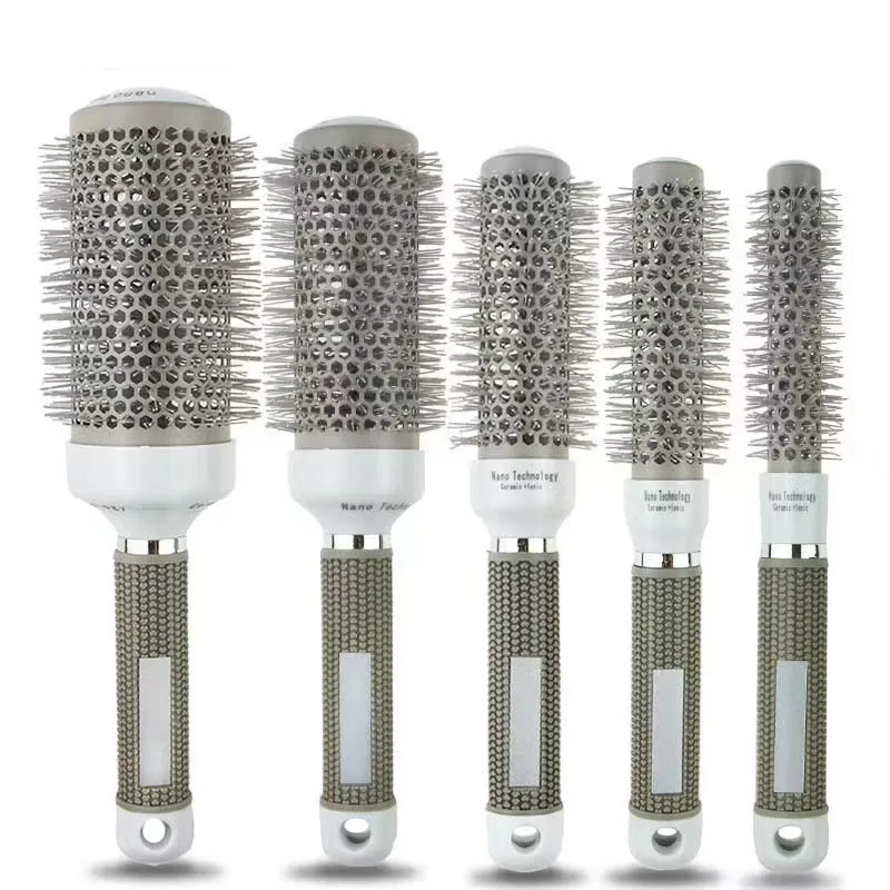 Круглая расческа для подушки, расческа для волос, серая алюминиевая трубка, керамическая Массажная термальная щетка для волос