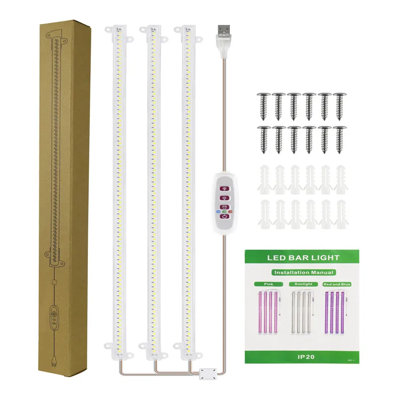 EASY & FLEXIBLE INSTALLATION -The grow light bar pack comes with screws and a double-sided tape. Compact design fits for various fixtures and surfaces. The power cord is 50 inches long for easy using in office,indoor,plant shelf,greenhouse etc