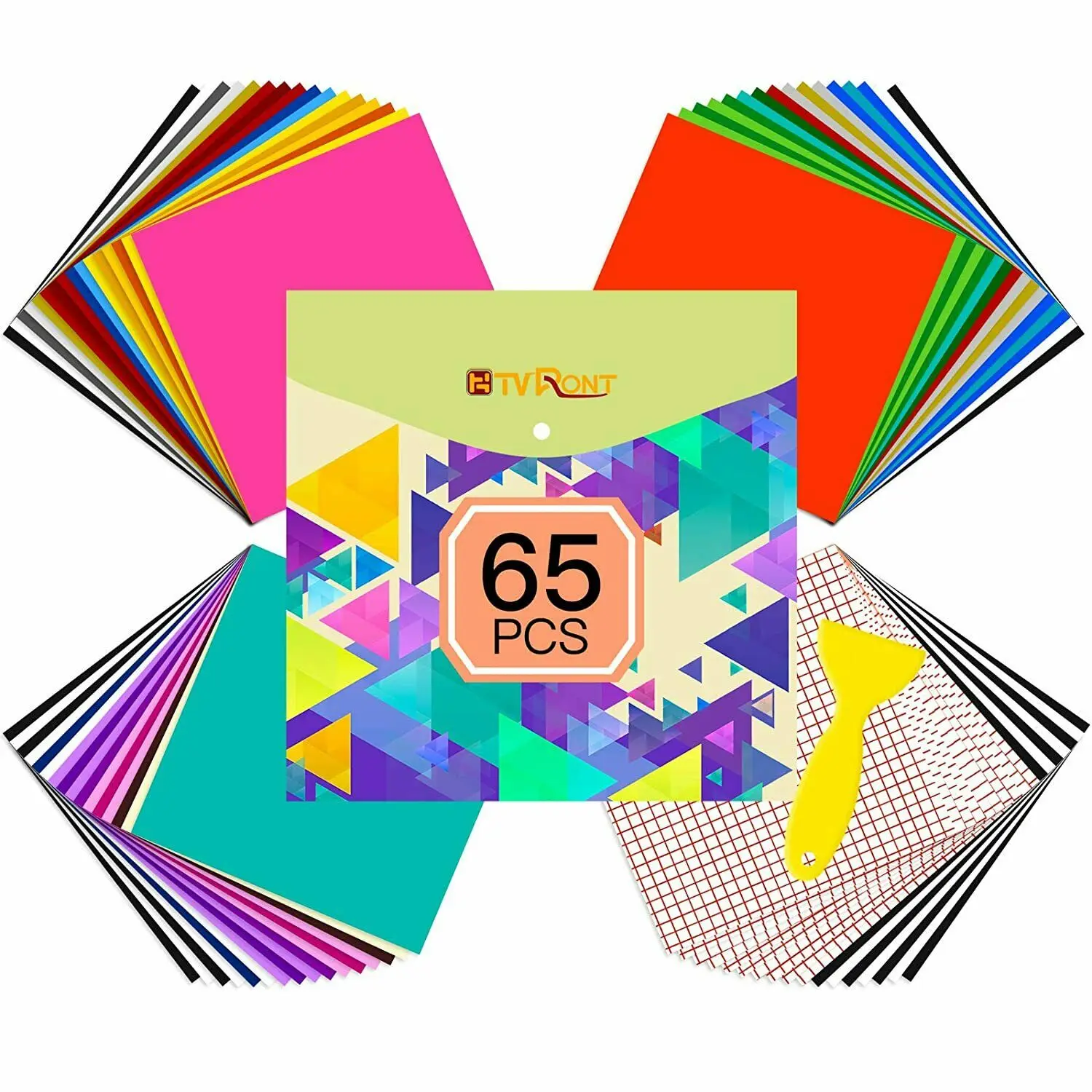 [65Упаковка винилов] Наш клейкий винил включает в себя 55 разных цветов клейких виниловых листов и 10 упаковочных листов для переноса ленты. Эти различные цвета яркие и яркие. Цвет не изменится или не исчезнет после стирки или дождя. Этот Самоклеящийся винил поставляется в плоском состоянии и готов к использованию. Конверт может держать клей винил от беспорядка. Определенно отличный выбор для вас!