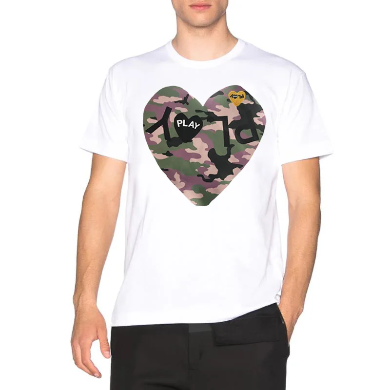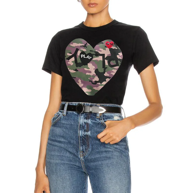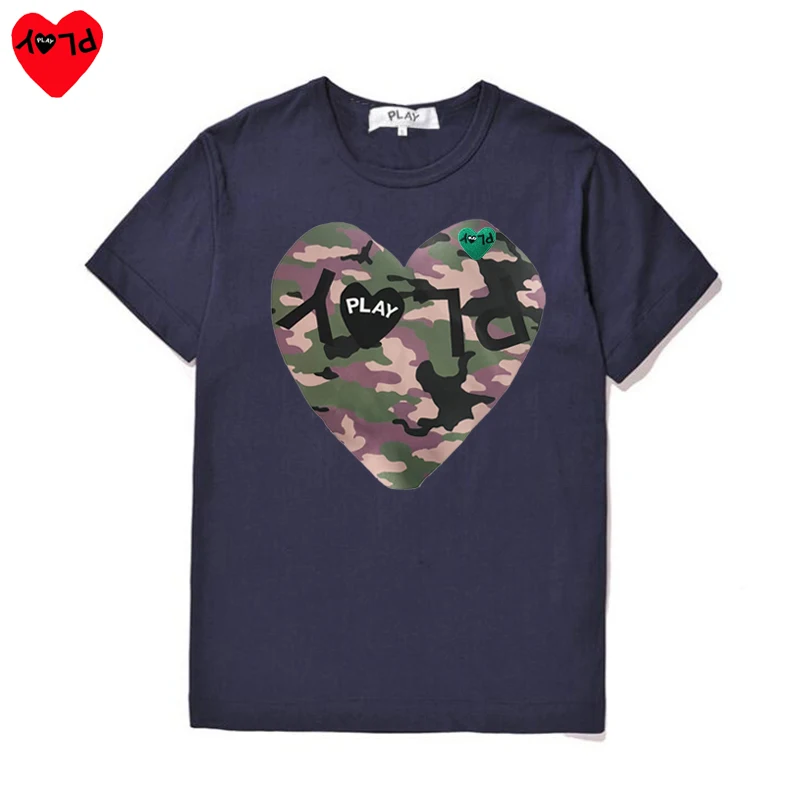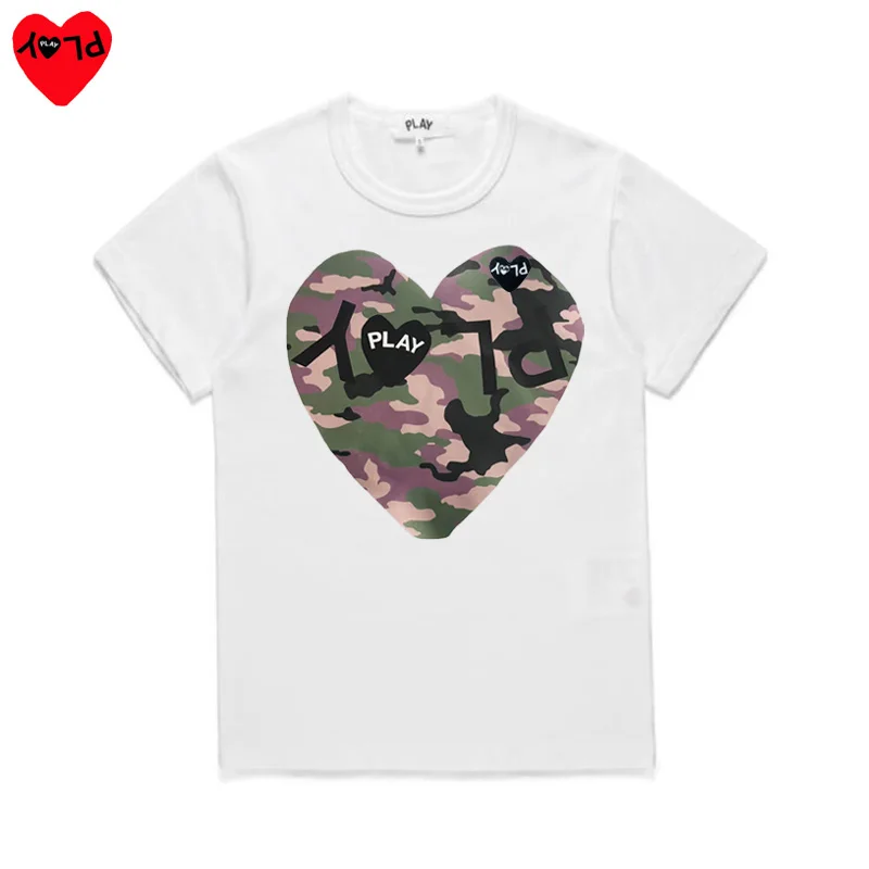 PLAY Мужская и женская футболка с буквенным камуфляжным принтом, с вышивкой в форме сердца, хлопковая футболка с коротким рукавом и круглым вырезом, летняя Свободная Повседневная футболка