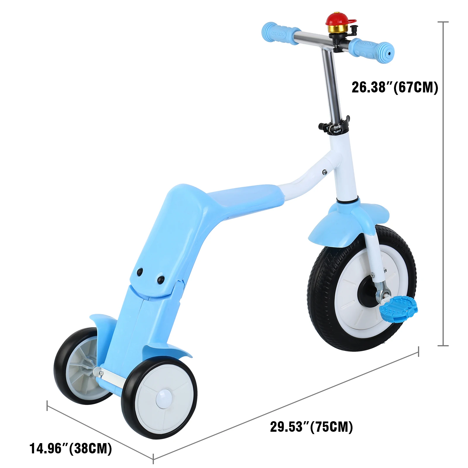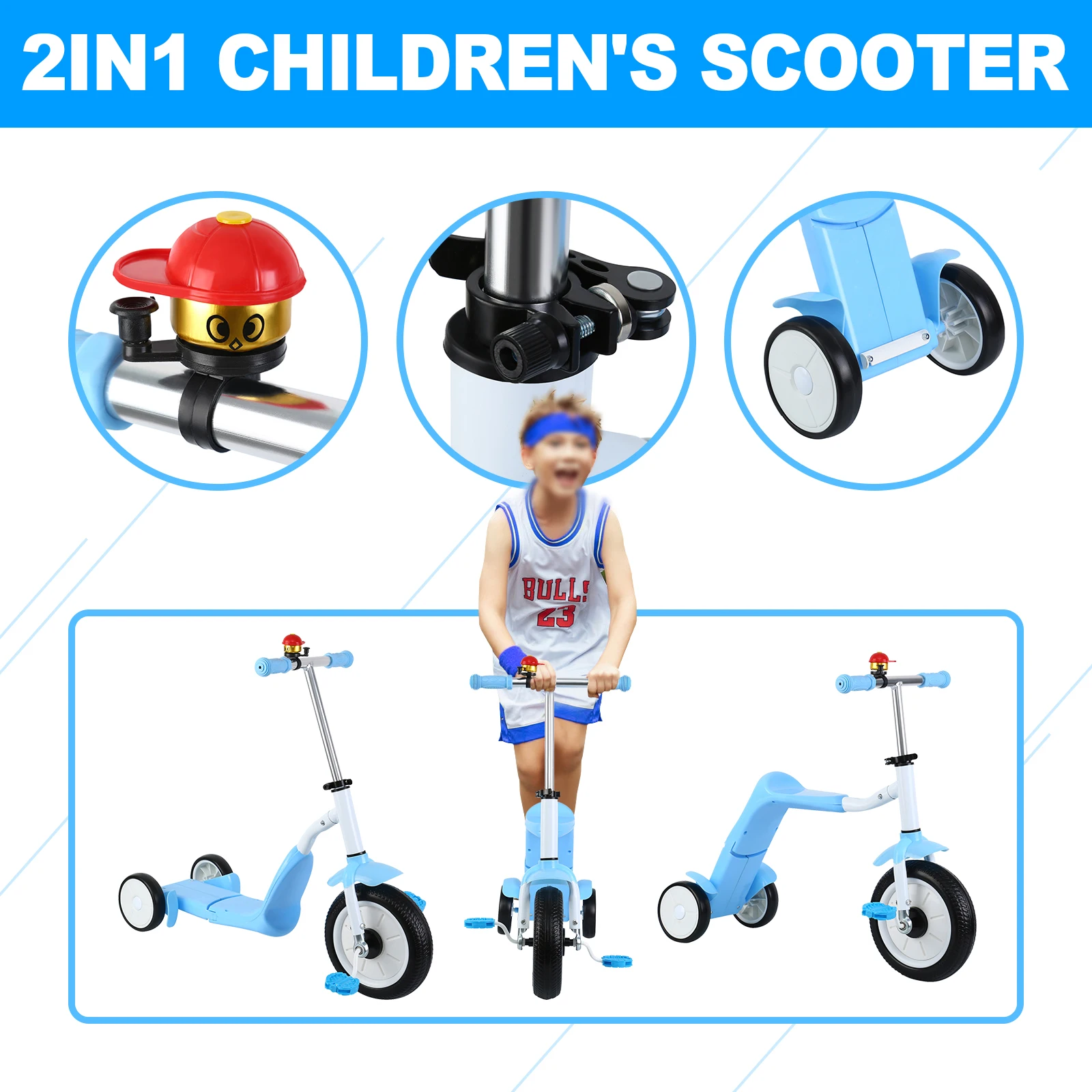 Этот продукт представляет собой многофункциональный трехколесный велосипед два в одном, который также может быть преобразован в скутер. Дети могут ездить на трехколесном велосипеде или устанавливать его как скутер. Трехколесный велосипед имеет функцию регулировки высоты и красивую ручную переднюю корзину, которая является интересным инструментом для путешествий для детей.