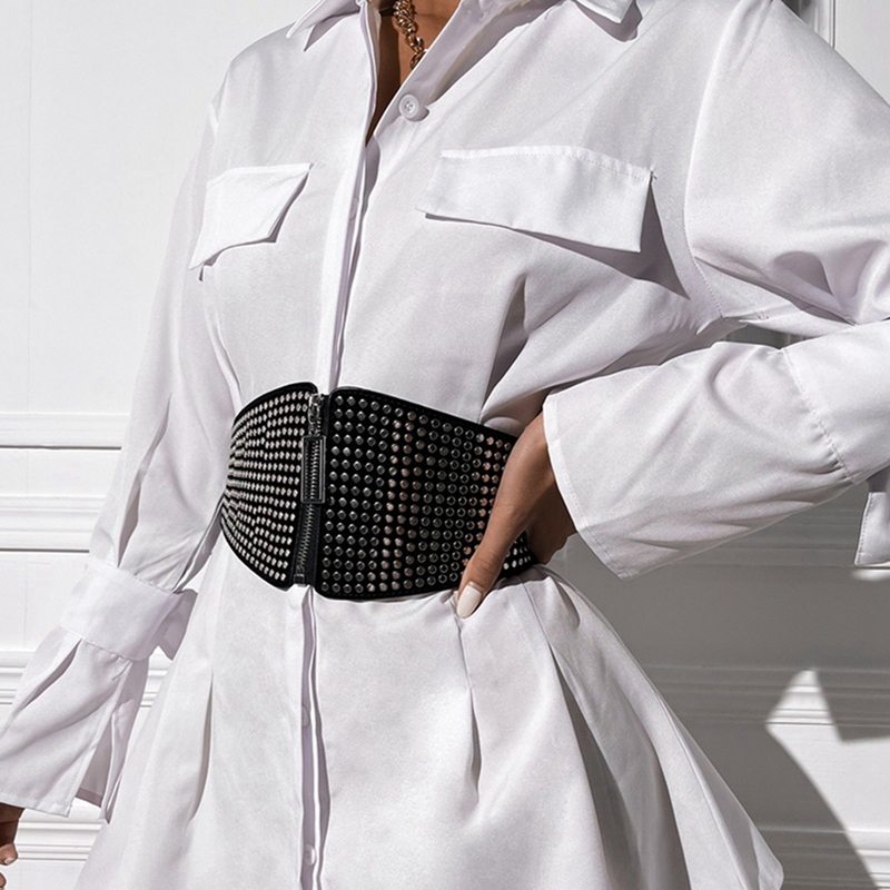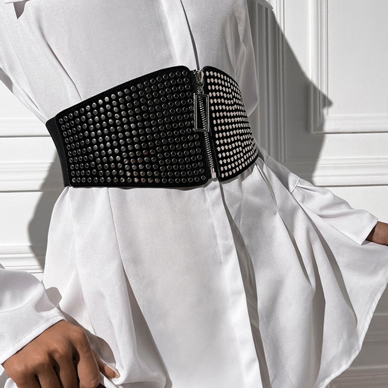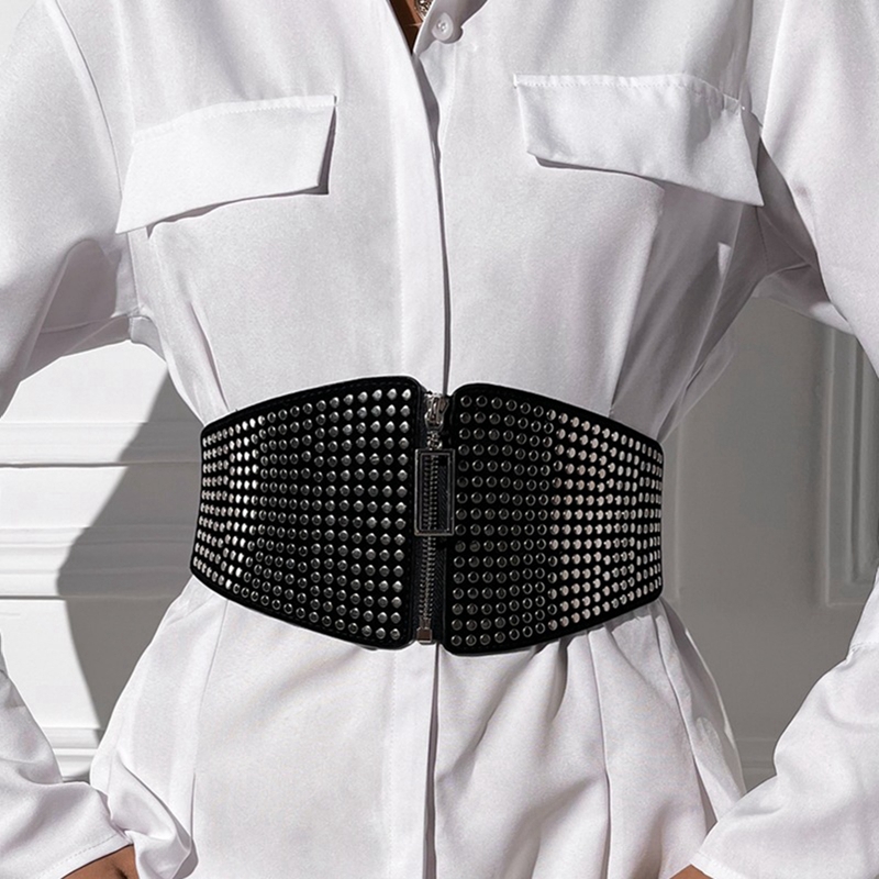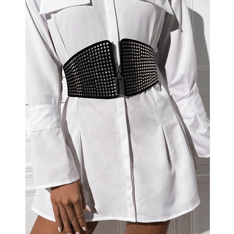 Женский поясной ремень, застежка-молния, металлический корсет с узором в горошек, ремни, бюстье, топы