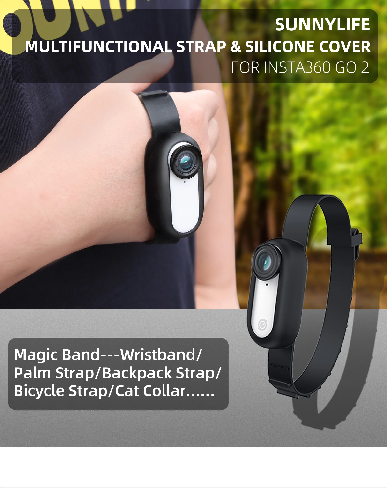 Силиконовый защитный чехол для камеры Insta360 GO 2, наручный рюкзак в полоску, велосипедный ремешок с кошачьим воротником, аксессуары