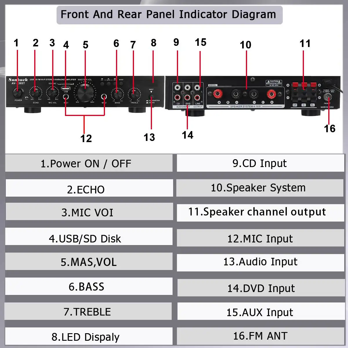 -Линейный выход, выходной сигнал может быть подключен к активному сабвуферу или другому источнику сигнала оборудования