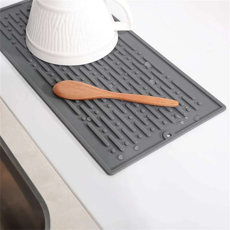 Идеально подходит для небольших пространств: Размер 29*14,5 см. Этот силиконовый коврик для сушки прямоугольной формы может вместить 4-6 очков. Эластичный Силиконовый коврик можно свернуть для хранения, экономя пространство.