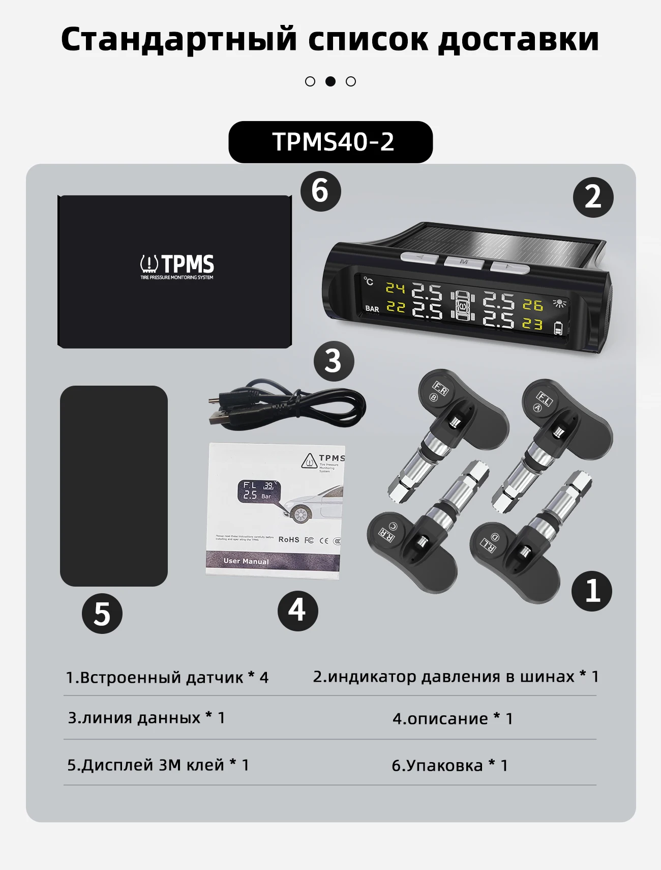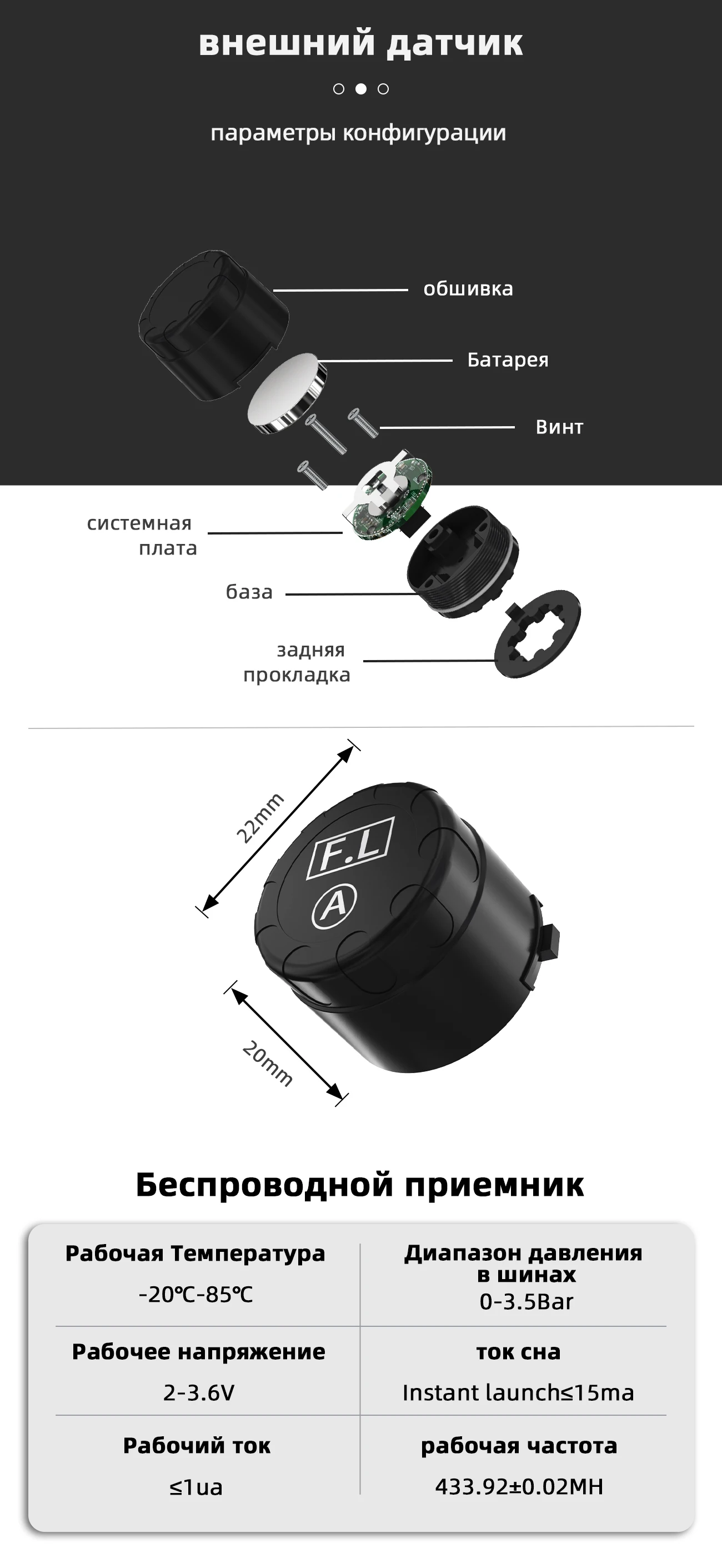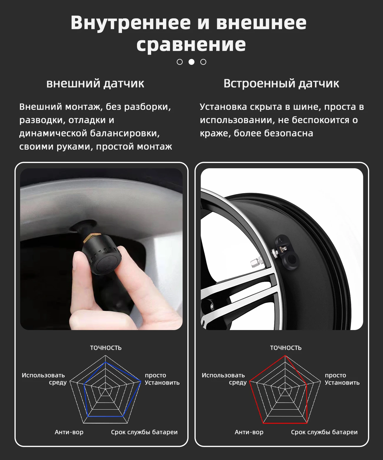• Срок службы батареи датчика — 3 лет • Чувствительные датчики в шинах