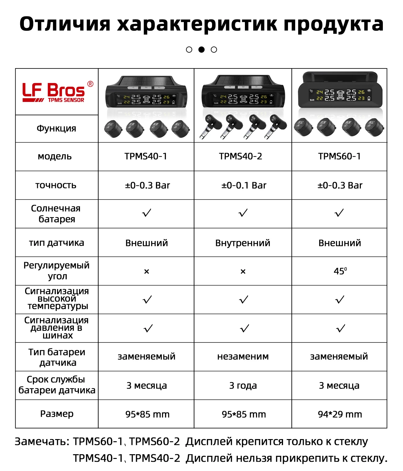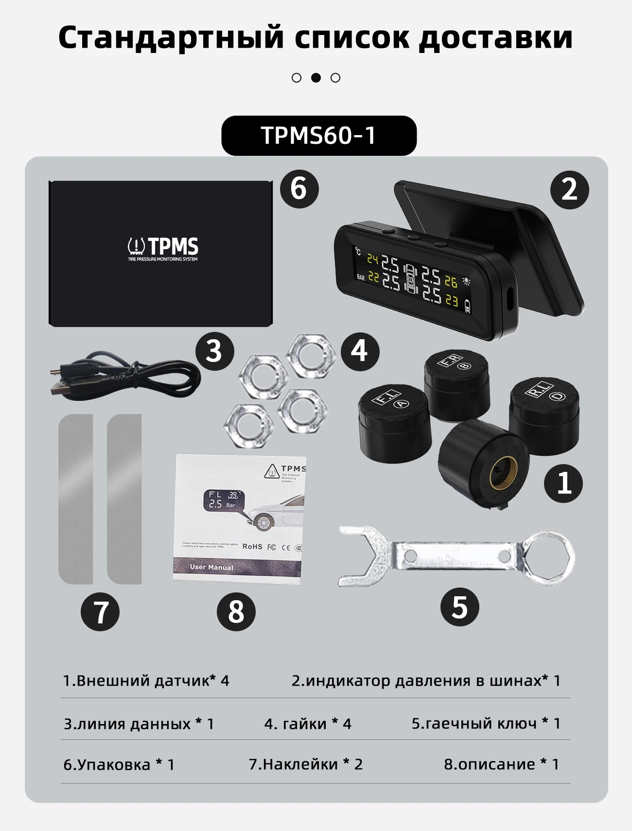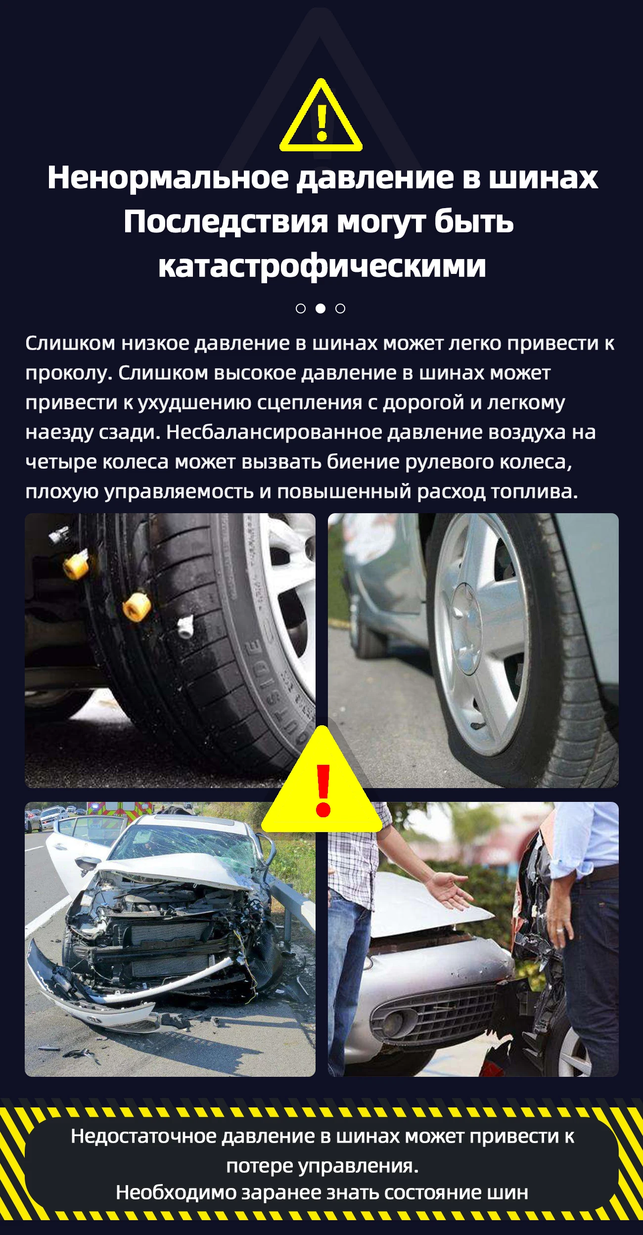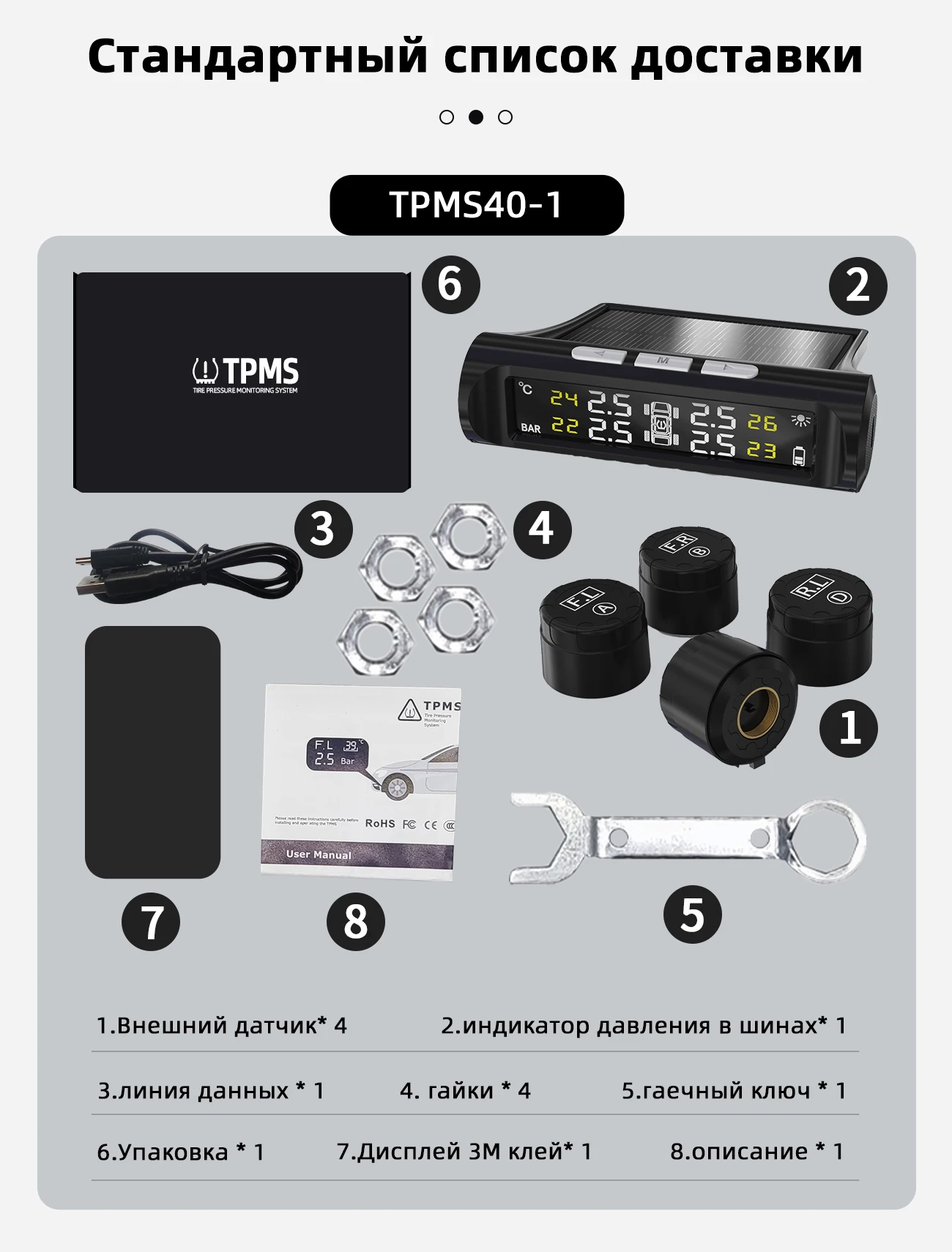 • Срок службы батареи датчика — 3 лет • Чувствительные датчики в шинах