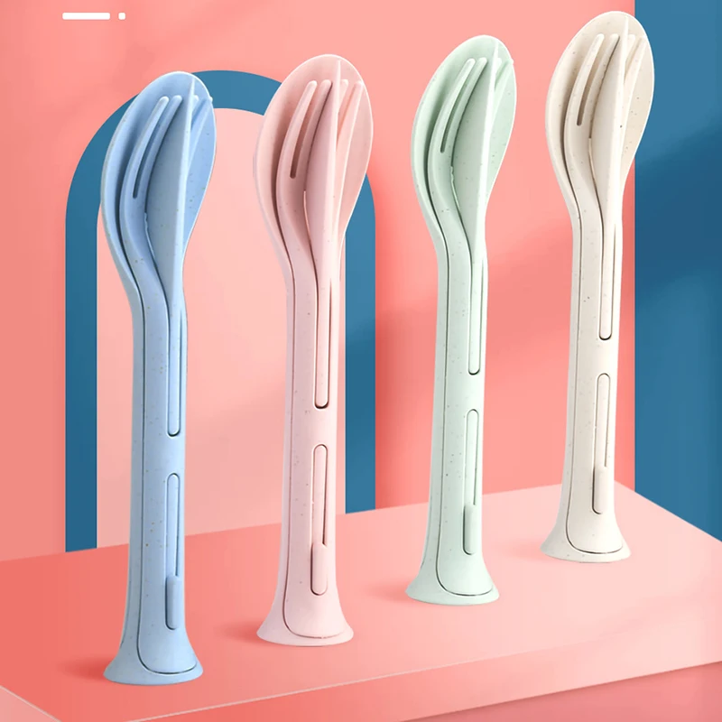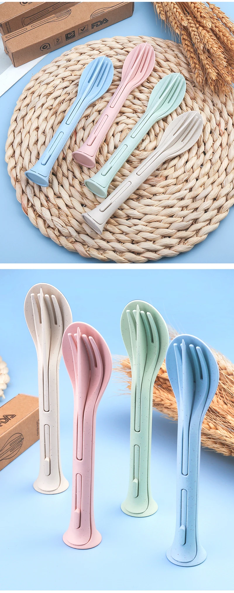Пшеничная соломенная волокнистая столовая посуда для кухни, посуда для сервировки, мультяшная обеденная ложка, набор кухонных лезвий