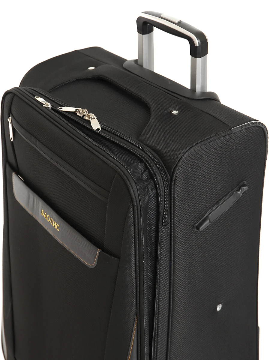 Комплект тканевых чемоданов из 3-х шт., Два колеса с амортизацией Баолис", цвет Черный. Размер L+M+S
