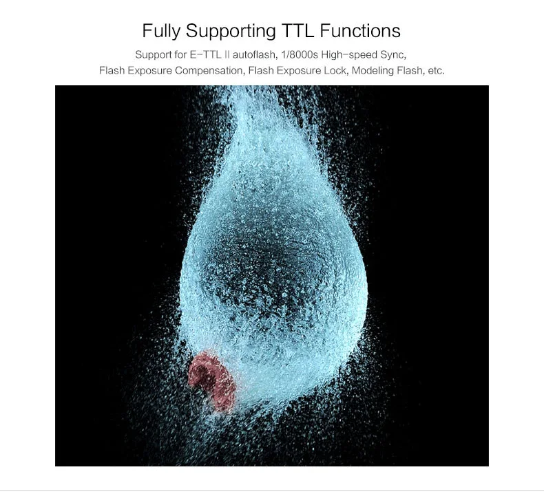Беспроводная Функция: в режиме TTL, коэффициент выключения; В режиме M, коэффициент вспышки (A B C); Поддержка GR (Группировка вспышки)