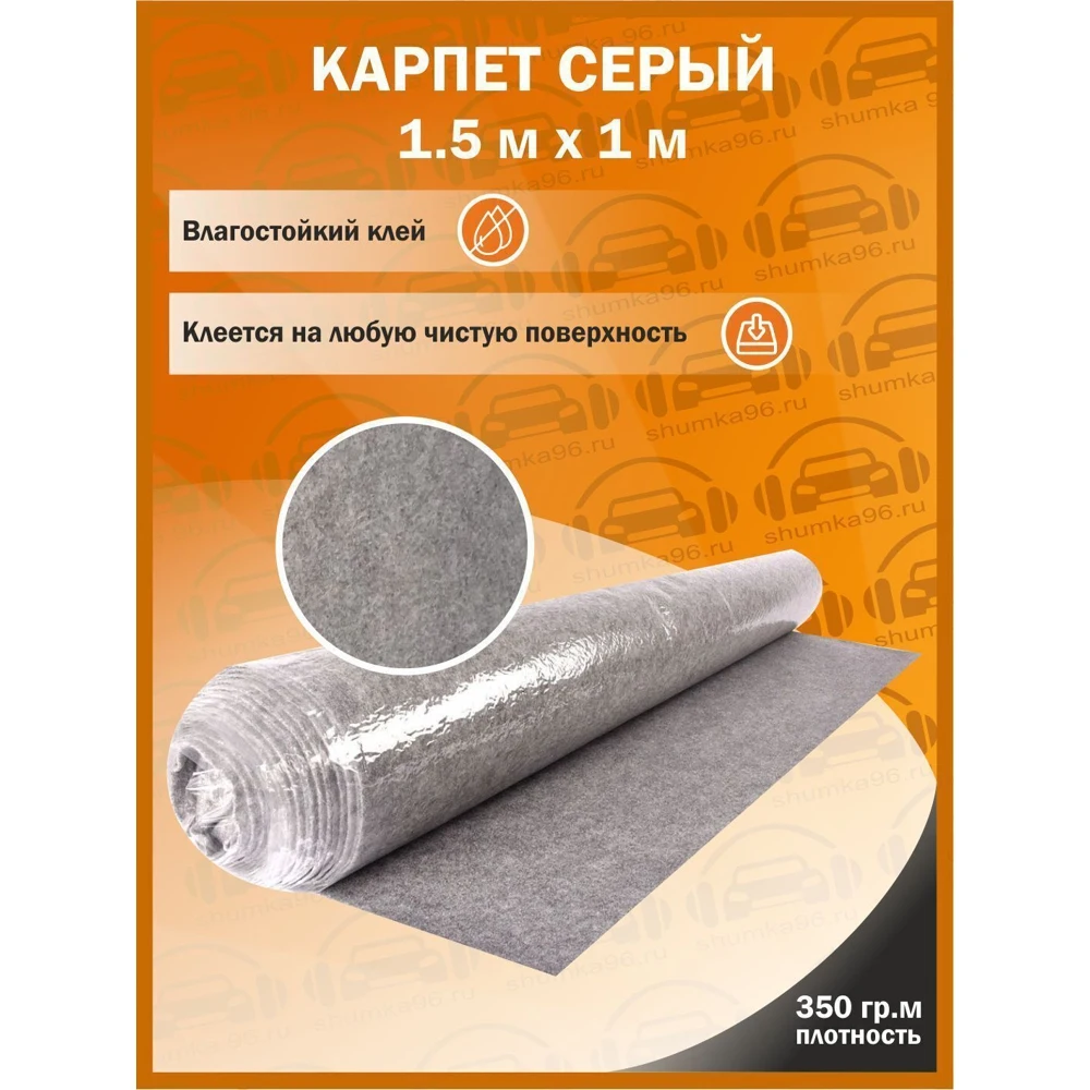 Самоклеящийся Карпет серый - 1500*1000мм - 350гр кв.м, 1,5 м ширина (Самоклеющийся Влагостойкий клей)