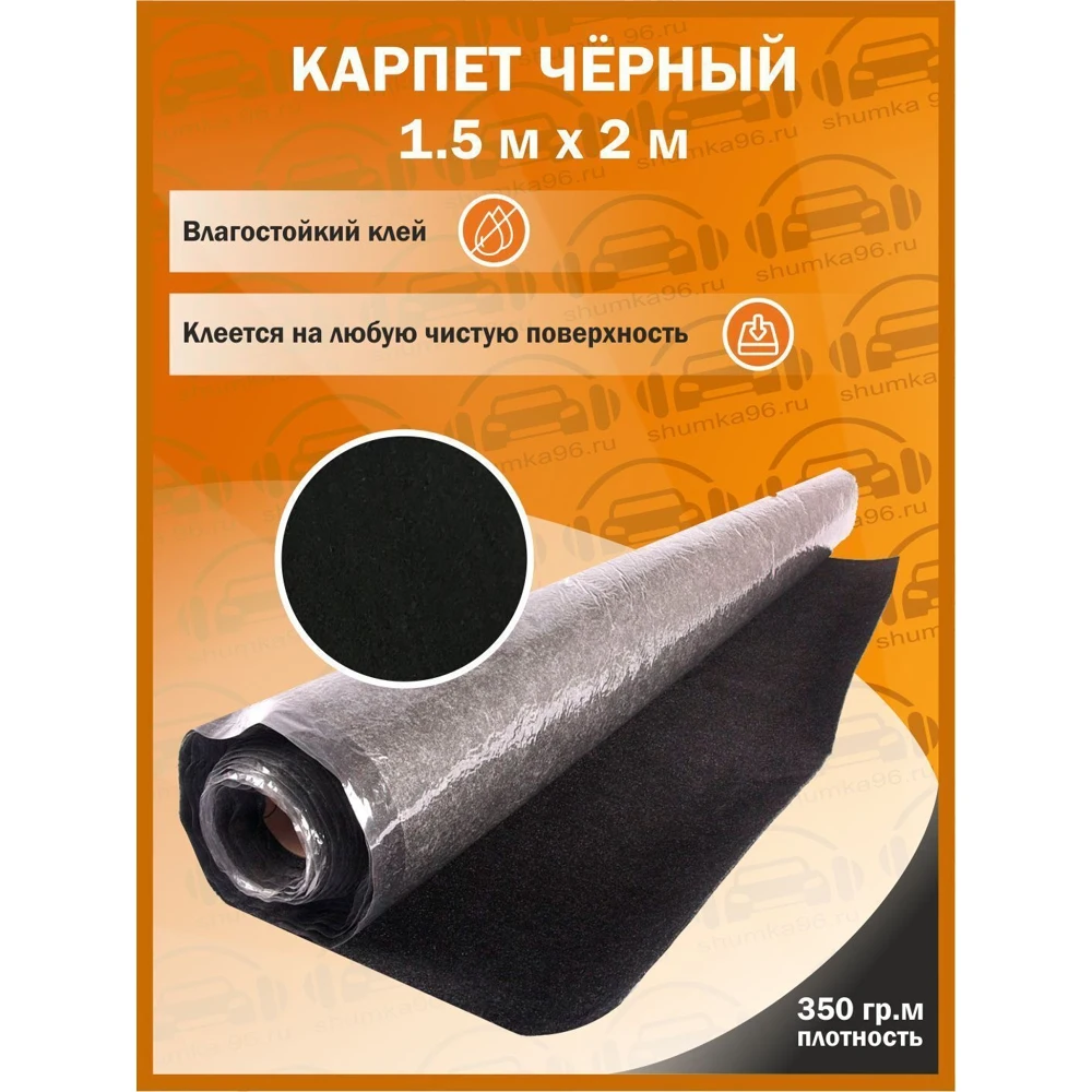 Самоклеящийся Карпет Черный - 1500*2000мм - 350гр кв.м, 1,5 м ширина / Самоклеющийся Влагостойкий клей /
