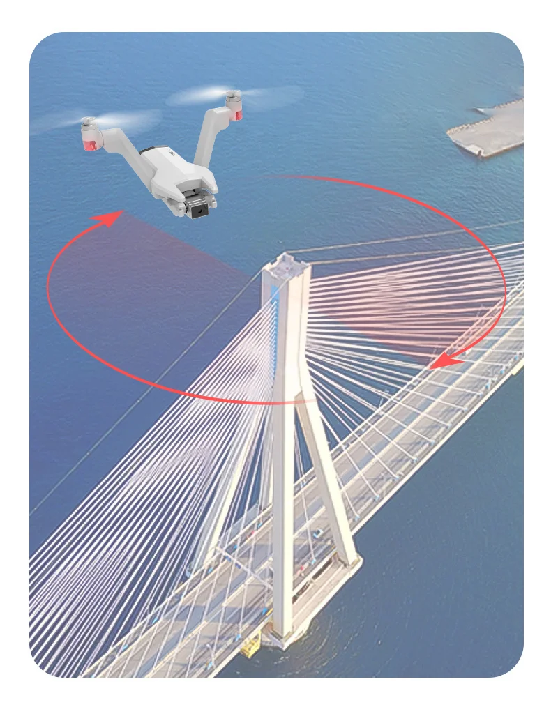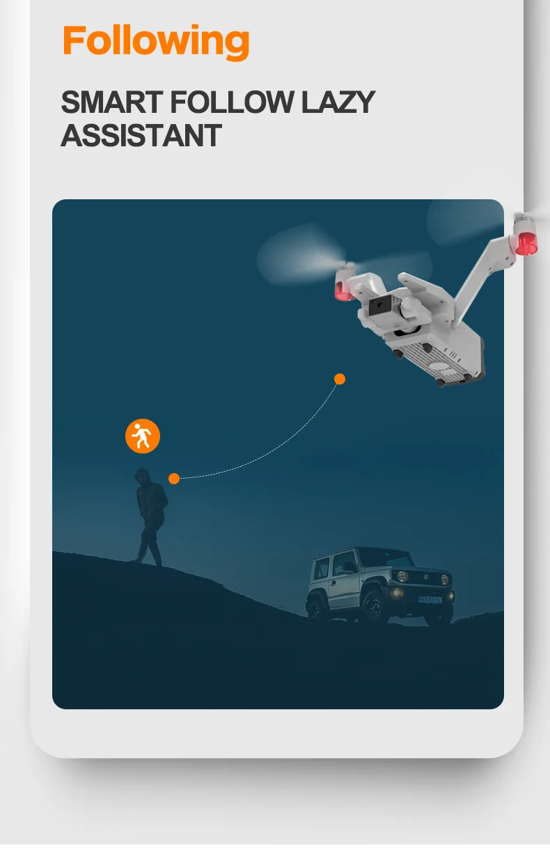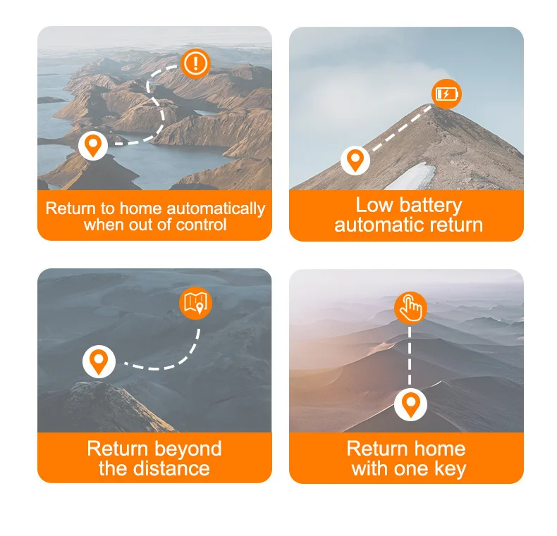 2. ① интеллектуальное слежение с GPS; ② следующее изображение: Определите тему и следуйте за полетом автоматически ③ возврат одной кнопки GPS в точку снятия