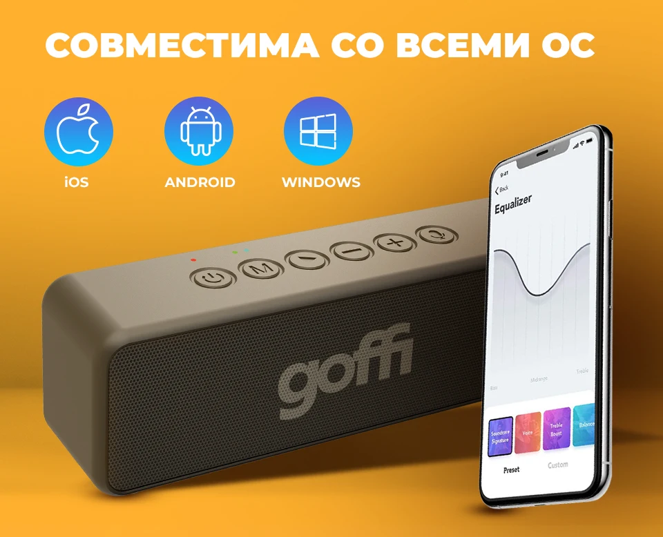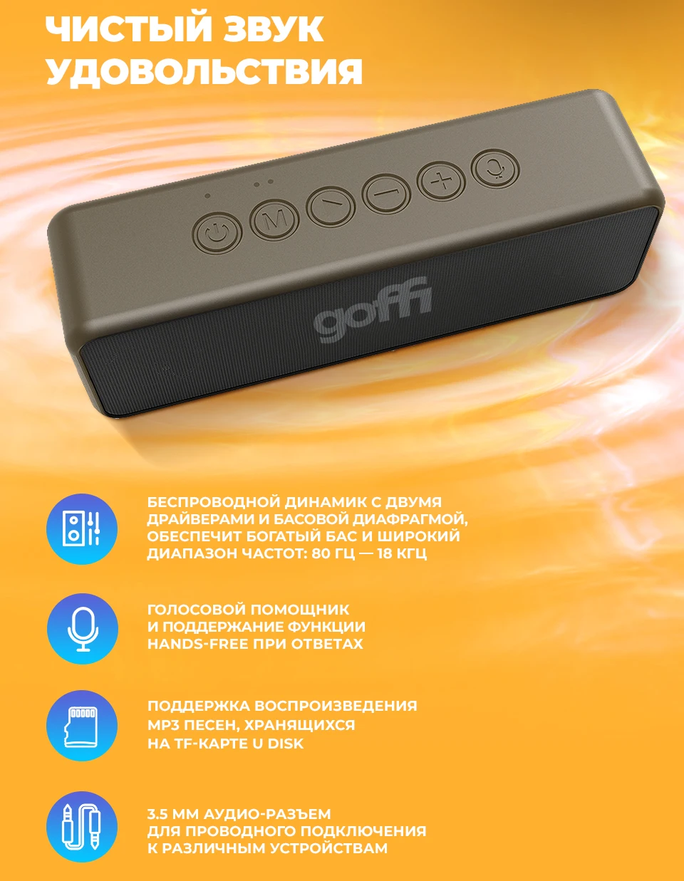 Стильная, портативная и водонепроницаемая колонка Goffi подарит удивительно богатое звучание любимых