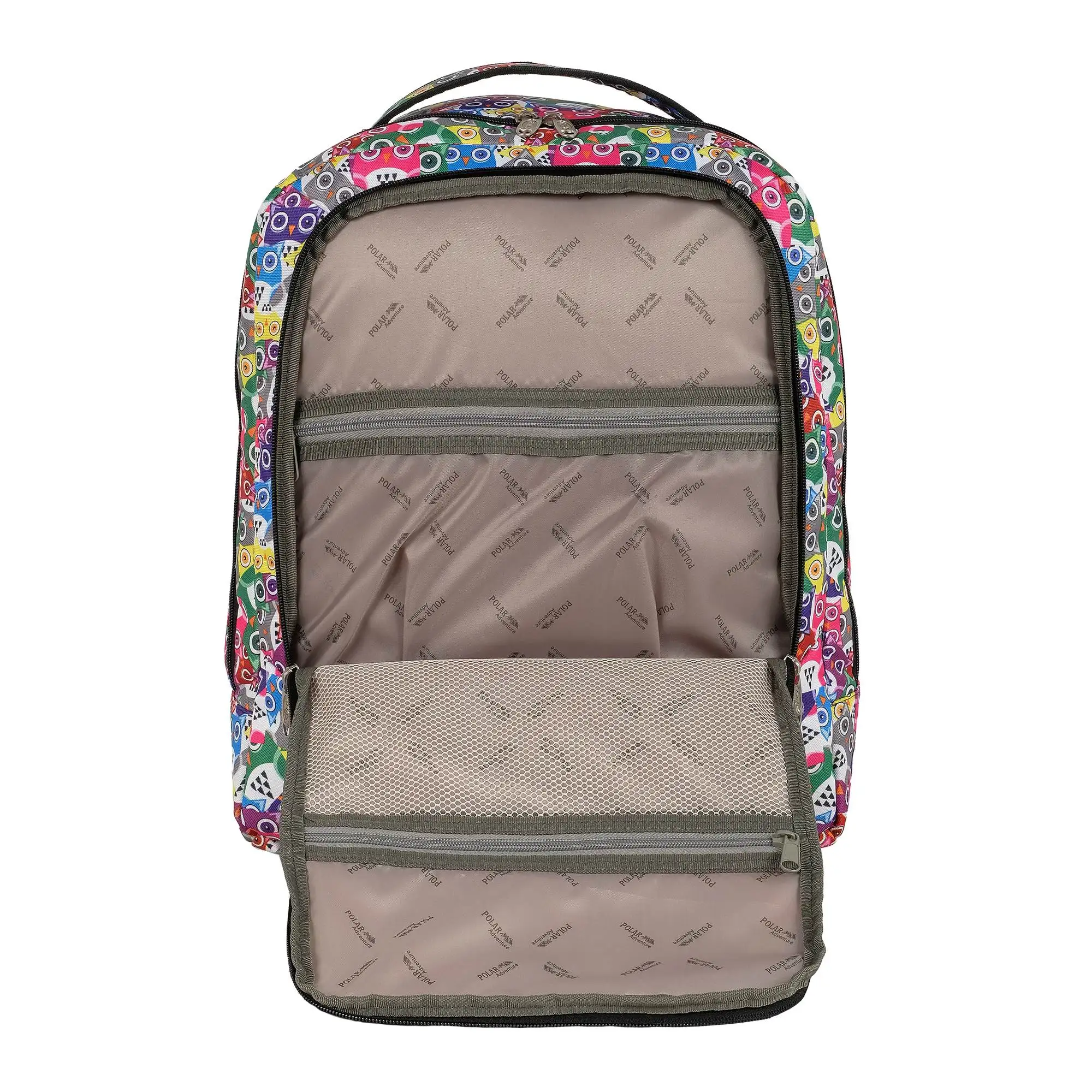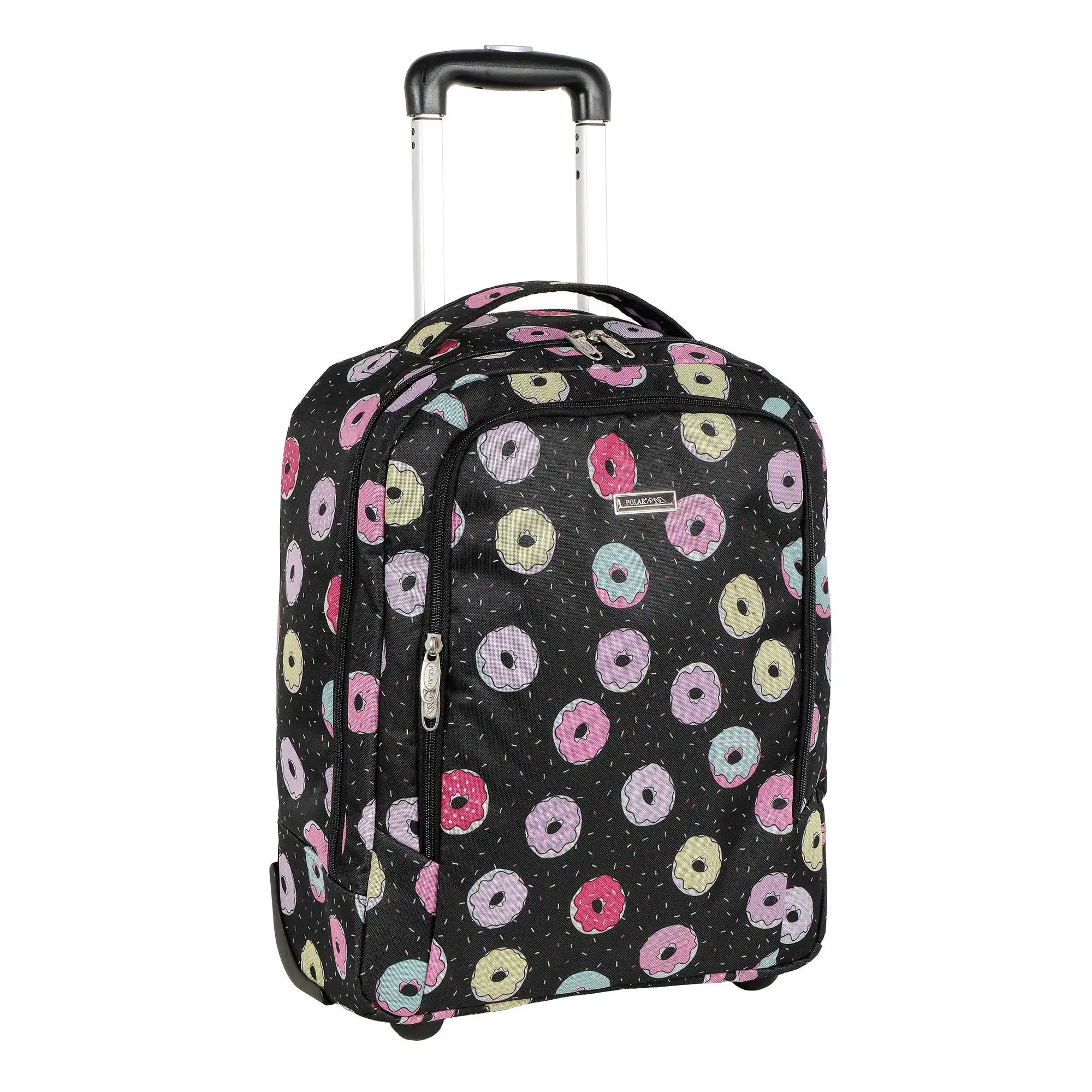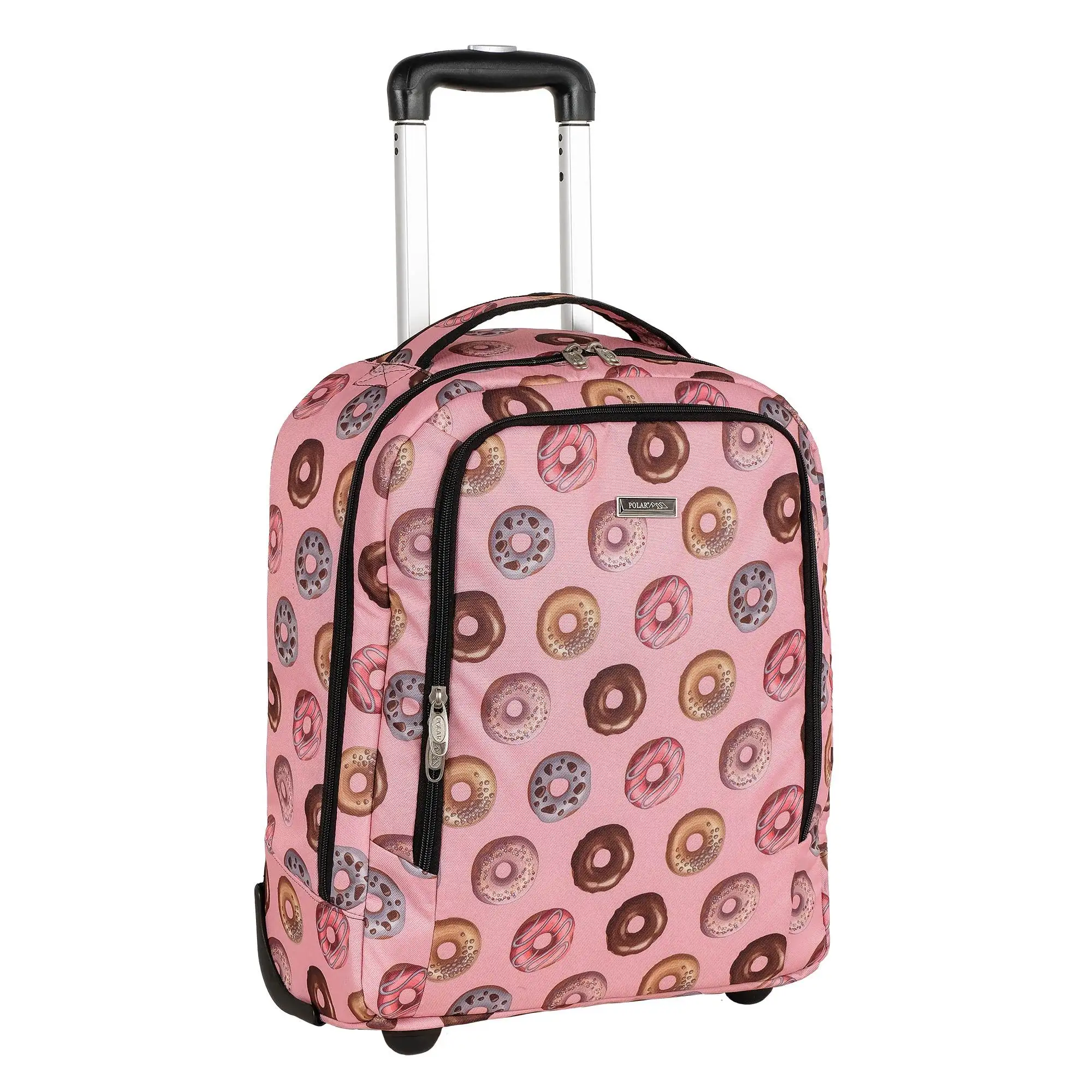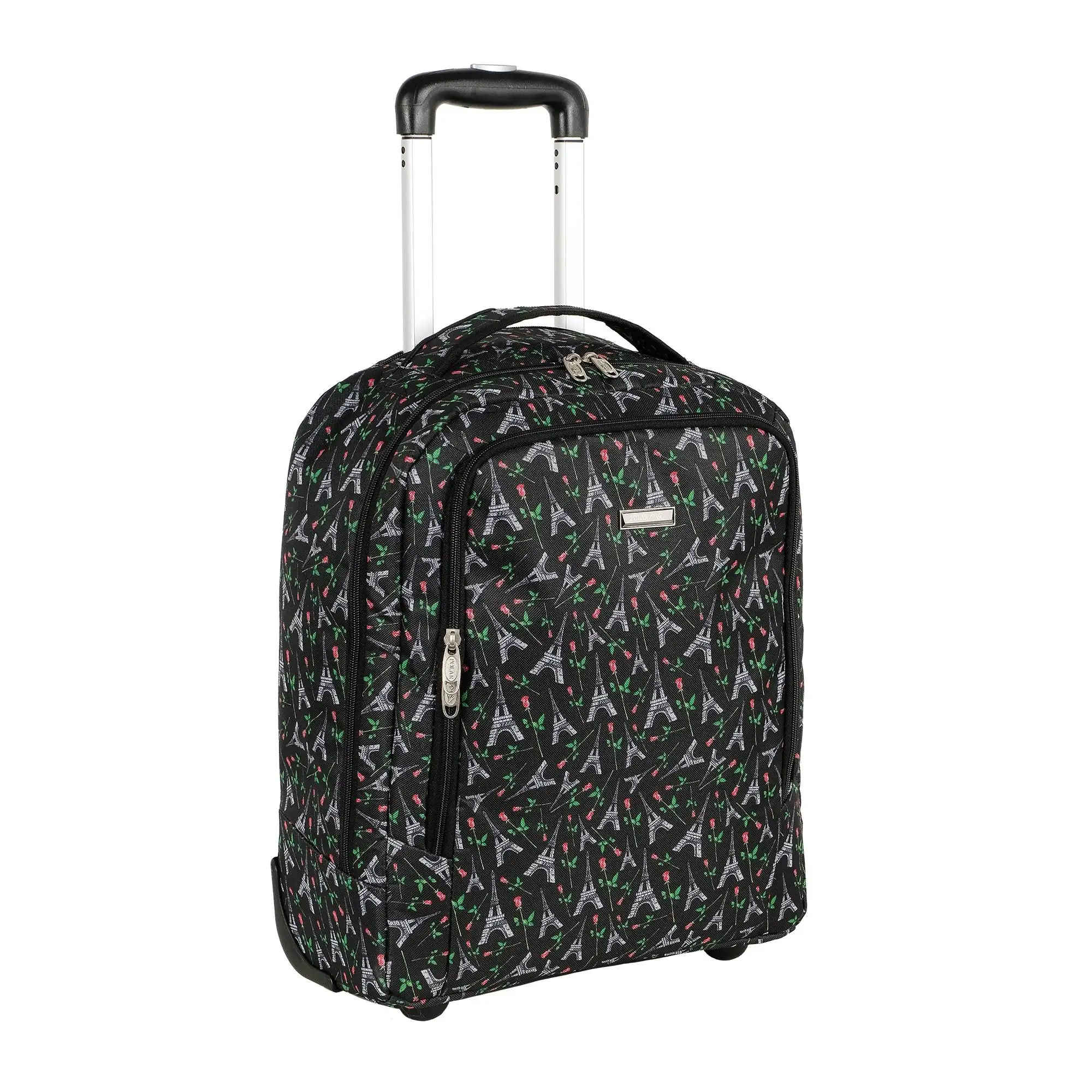 Рюкзак на колесах — недорогая, функциональная, легкая и компактная модель багажа, которую можно взять с собой как ручную кладь на борт самолета. В заднюю стенку встроены рюкзачные лямки, которые можно достать расстегнув молнию. Внутри — одно большое отделение с фиксирующими ремнями и с карманом для ноутбука 15″. Снаружи есть большой карман на молнии. Выдвигающаяся ручка полностью убирается внутрь чемодана и закрывается на молнию.