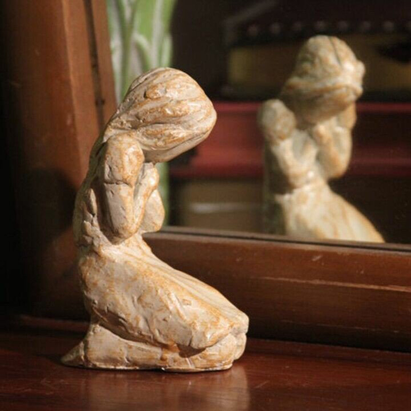 Милый час красивой ручной вдохновляющей скульптуры женщины молящийся орнамент