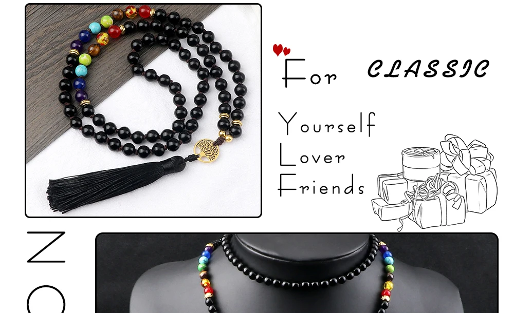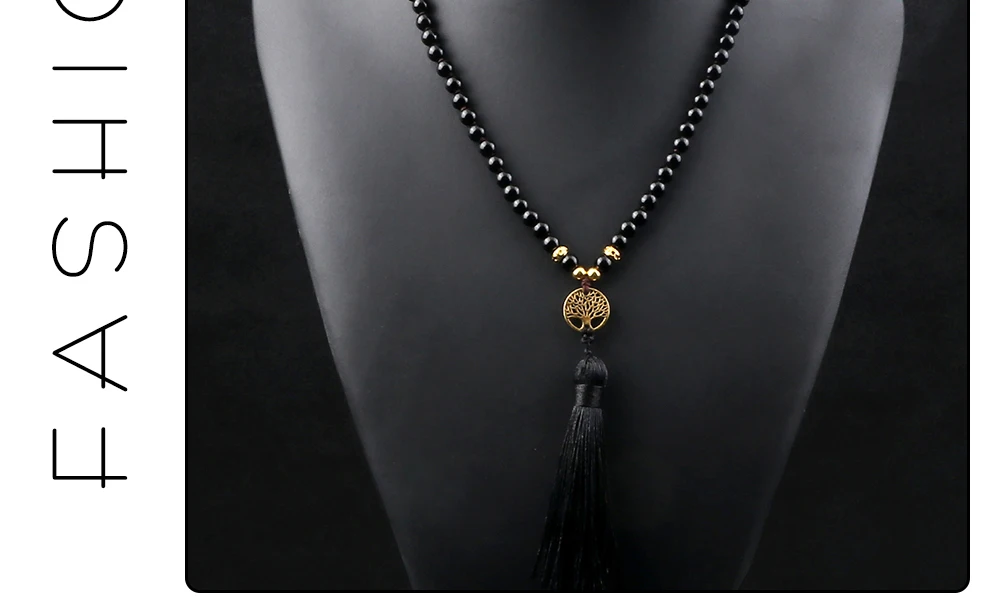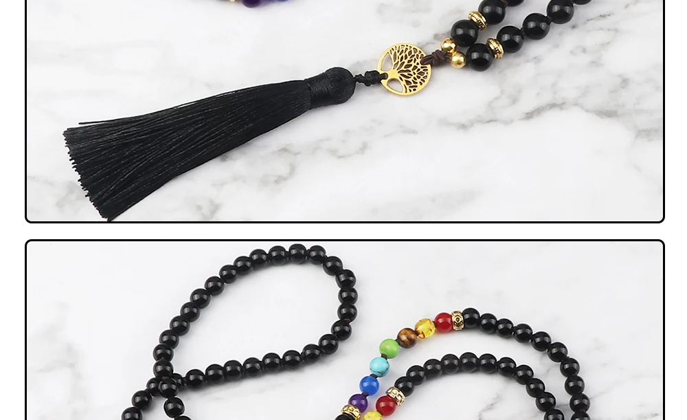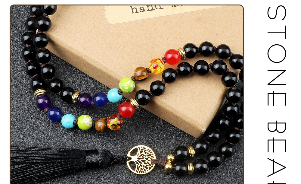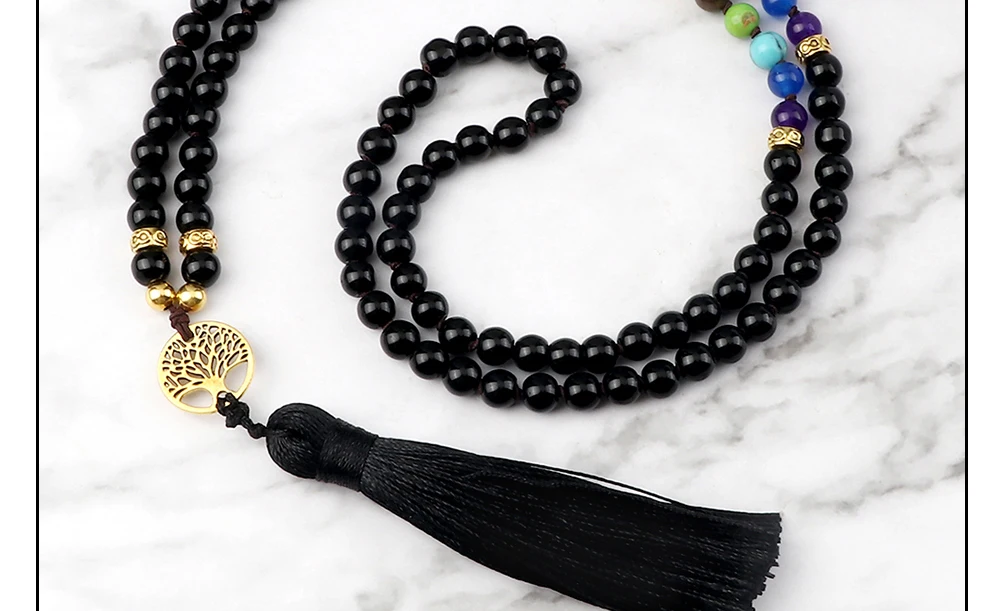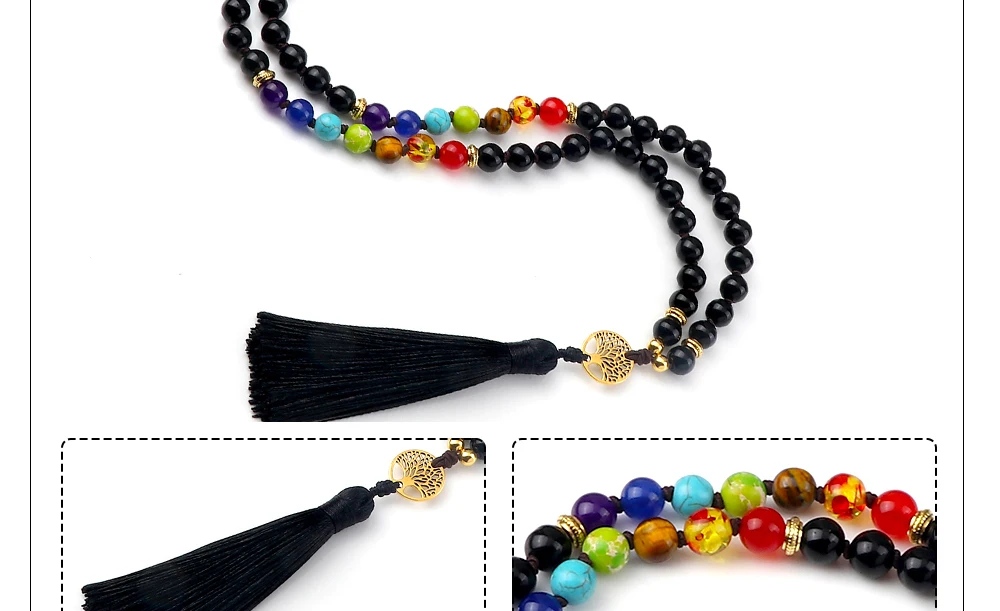 Прямая поставка, Винтажное колье с 7 бусинами в форме чакры, модное ожерелье с подвеской в виде дерева жизни и кисточкой, ожерелье из натурального камня, ювелирное изделие в духе йоги, подарок для влюбленных