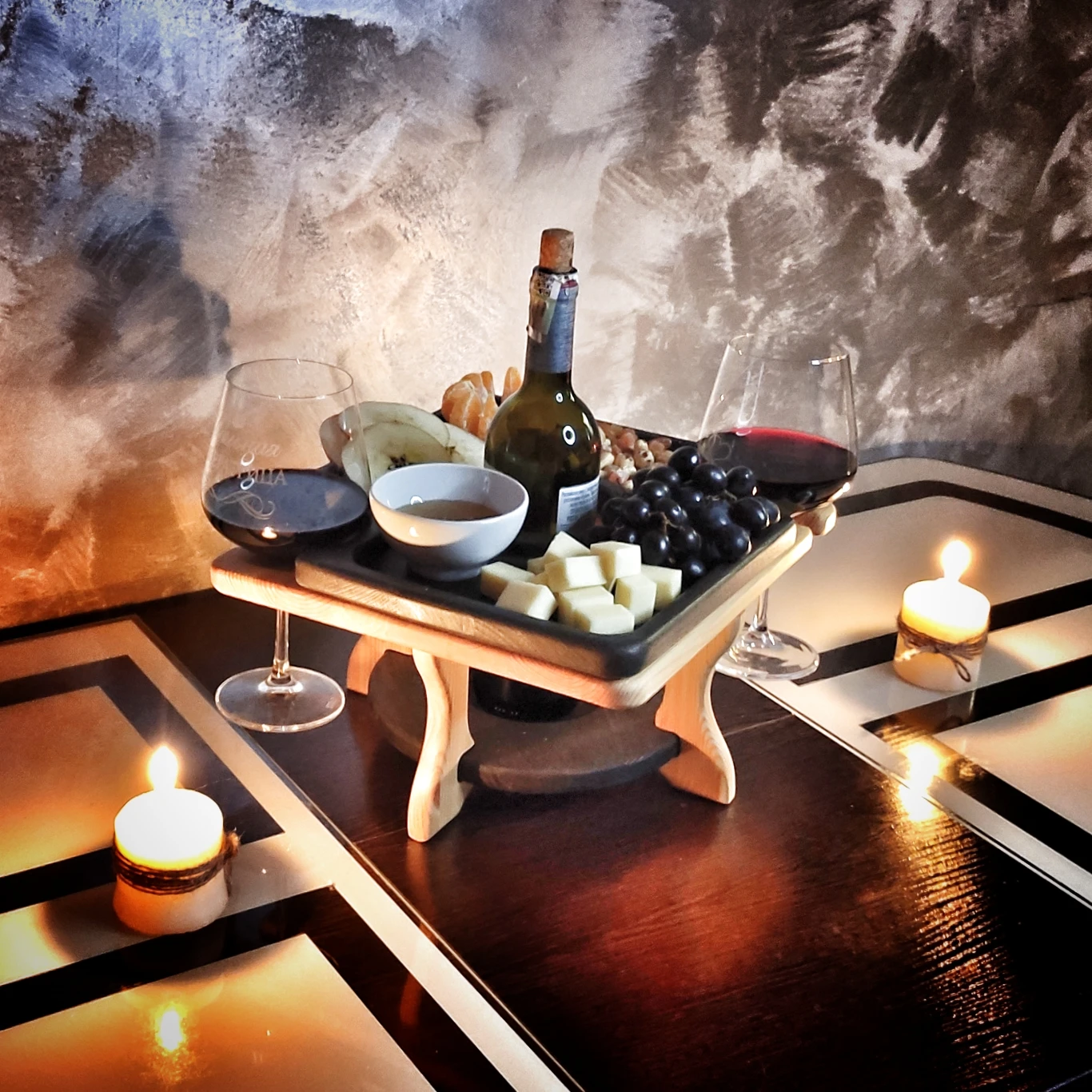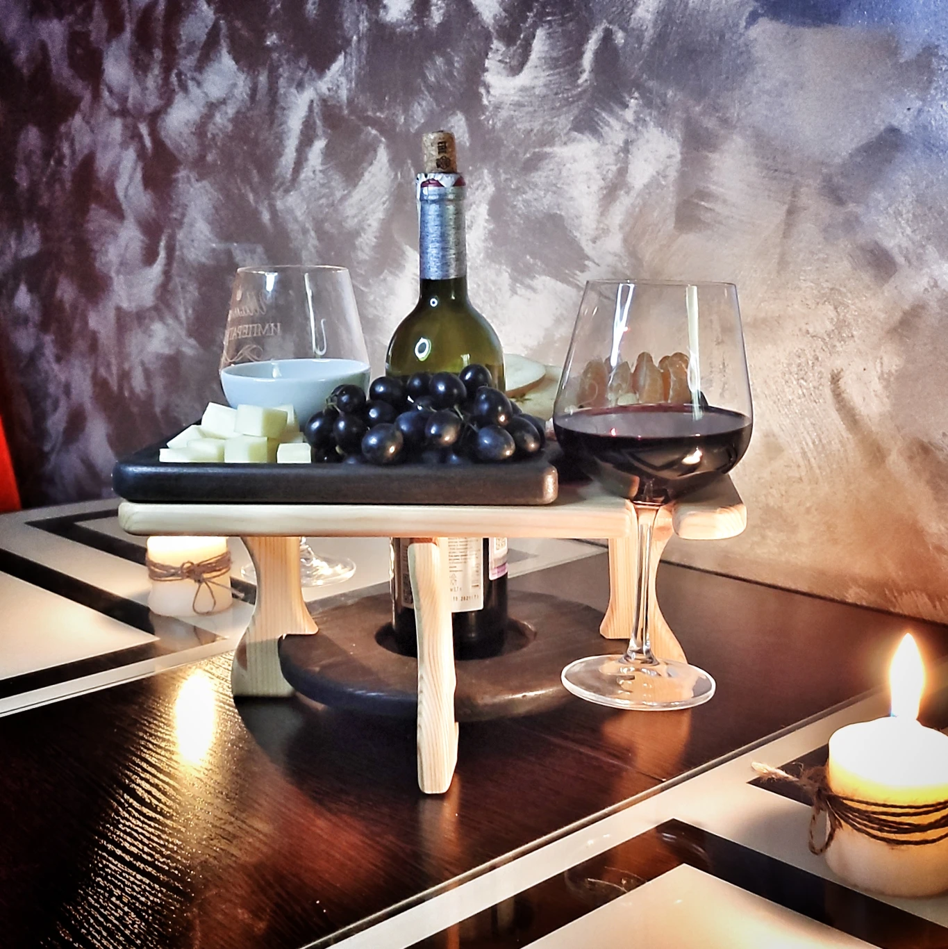 Винный столик, это оригинальное решение для романтического вечера, красивой уютной сервировки.
