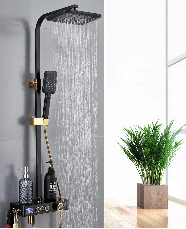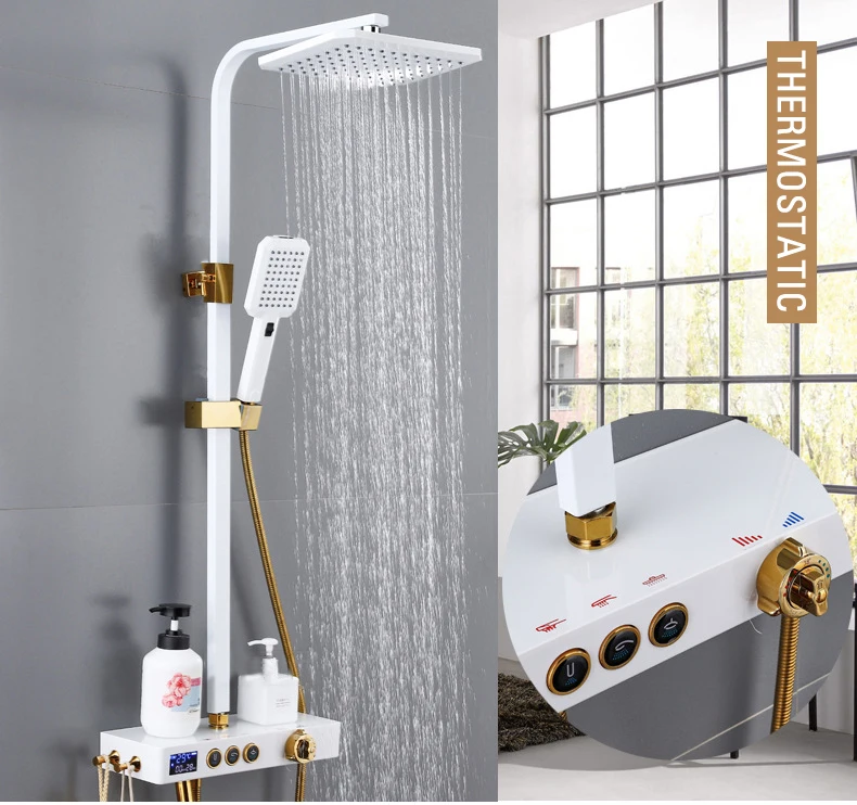 Цифровая система для душа, набор для душа с золотым и белым дождем, термостатический смеситель для ванной комнаты, латунные краны для ванной, настенное крепление для ванны, Grifo