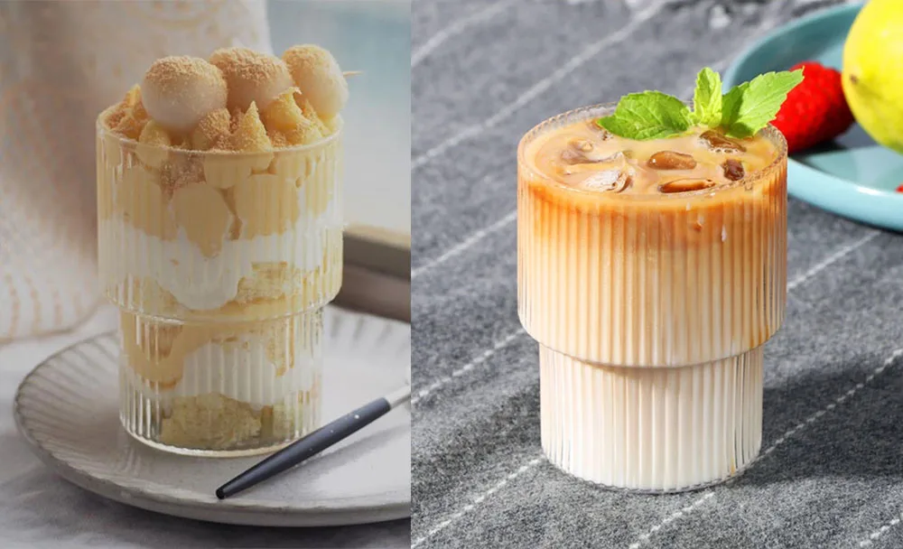 2. GLASS стекло многоцелевой 】: Набор стеклянных чашек имеет много применений, может использоваться в качестве стаканчиков для воды, кофейных чашек для льда, пивных чашек, коктейльных чашек и т. д., подходит для домов, баров, десертные магазины, магазины мороженого и другие места. Отлично подходит для друзей или для собственного использования.