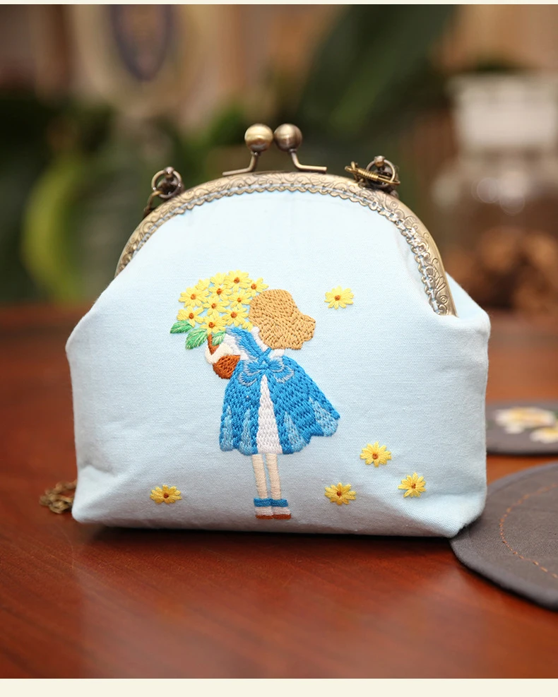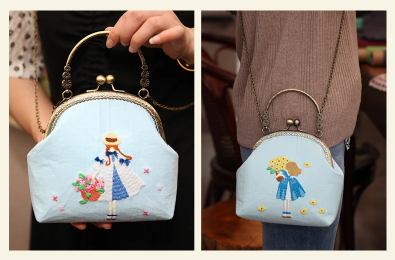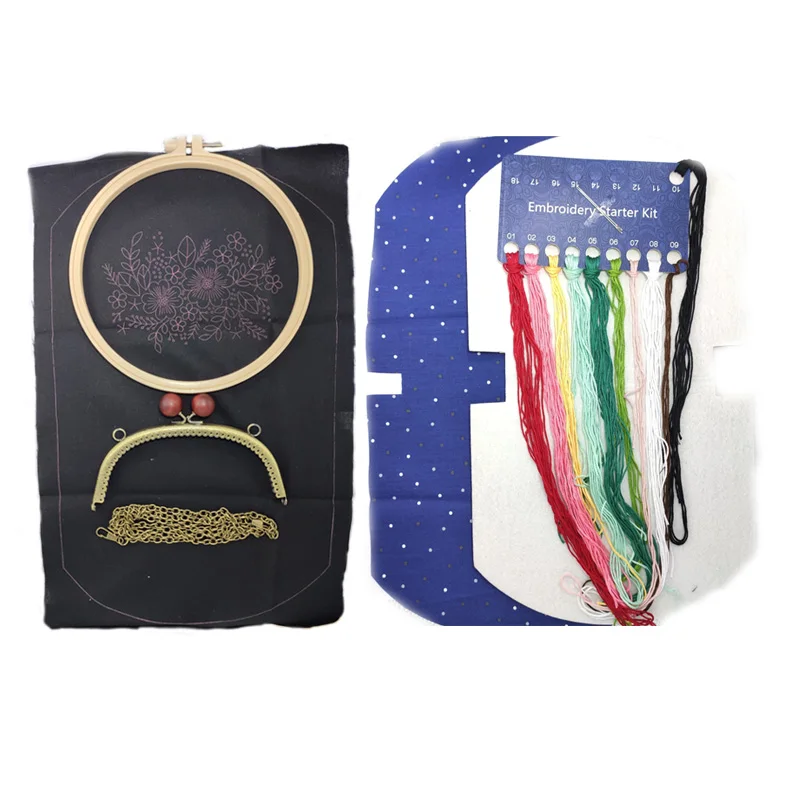 Complete set of tools (1 pcs Printed fabric+Enough threads + 2pcs needles+1pcs 15/20cm plastic hoop+Bag accessories)