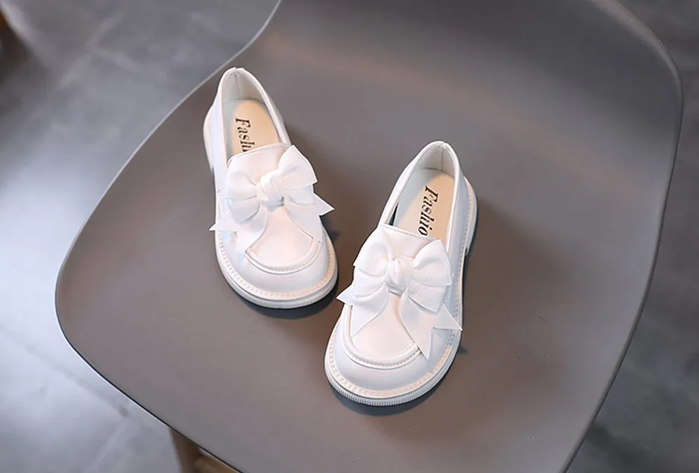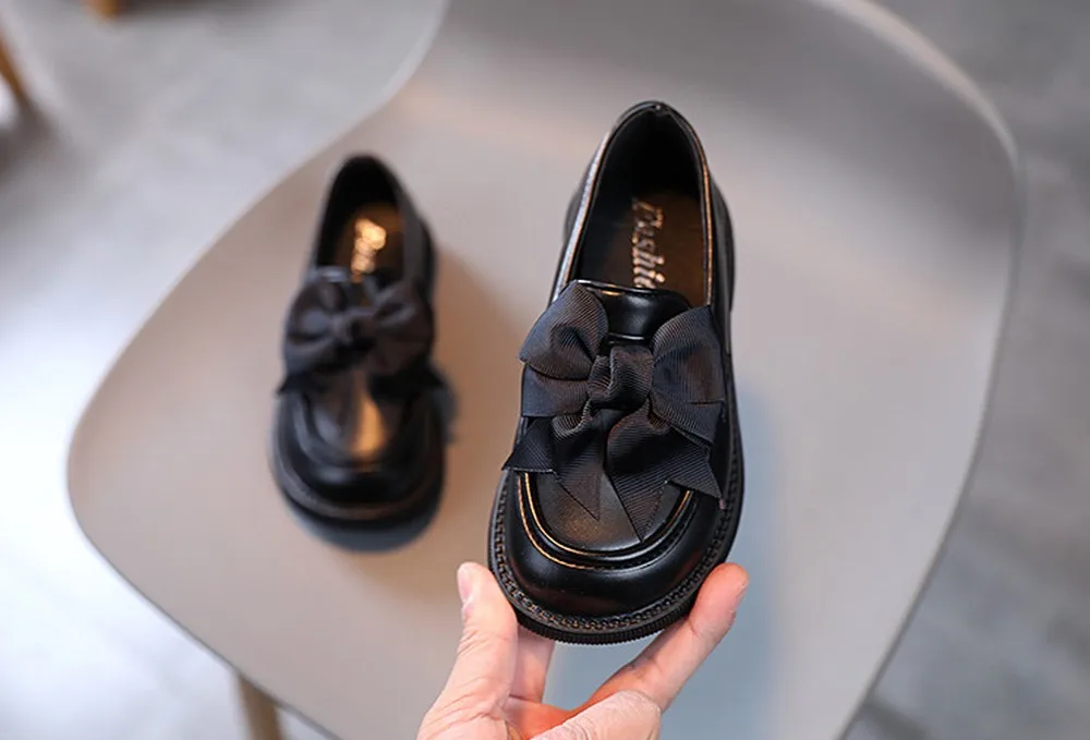 Girls Leather Shoes 2022 Spring Autumn New Style Girls Shallow Mouth Bow Princess Shoes
