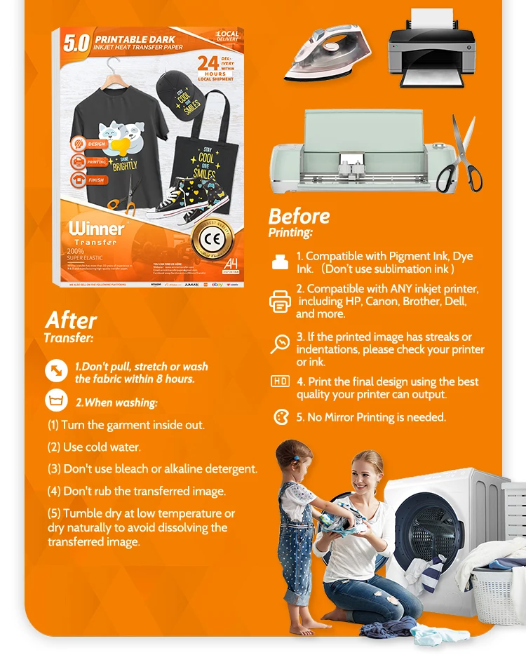 WinnerTransfer-Papel de transferencia térmica para camisetas de tela oscura, papel de impresión de inyección de tinta A4, 10 hojas de papel de hierro para tela