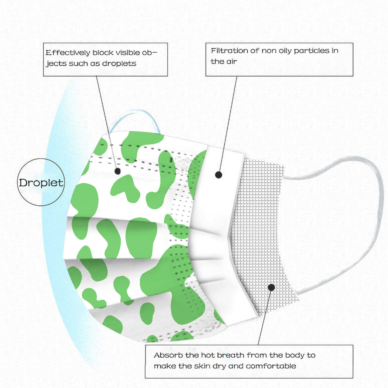 Трехслойная одноразовая маска из нетканого материала состоит из 3-х слойных материалов.Ткань спанлейсМатериал, он безопасен для вас в использовании. Дышащий материал и симпатичные узоры, что делает его полезным и модным. Специальный 3-слойный нетканый дизайн обеспечивает некоторую защиту от выхлопных газов автомобилей, пыльцы и т. Д. Эластичная петля для ушей, легко носить и не давит на уши. Маникюрный салон или любые другие области, где может потребоваться защита
