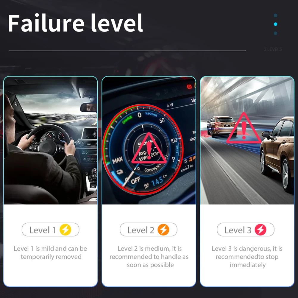 * 2. Автоматическое определение автомобиля, считывание кода ошибки автомобиля в режиме реального времени и разделение кодов ошибок на три уровня, 1. Может держать накопитель; 2. Пожалуйста, попытайтесь исправить это как можно скорее; 3. Пожалуйста, остановите его и найдите решения, предоставьте профессиональные предложения по ремонту после прочтения кода неисправности (как отремонтировать).