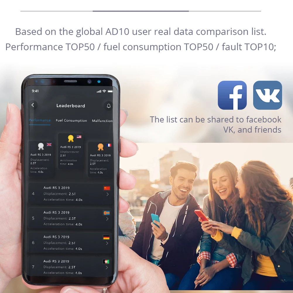 * 3. Поставляется с бесплатным приложением, которое содержит все функции ELM327, с функцией HUD и производительности автомобиля PK лидеров