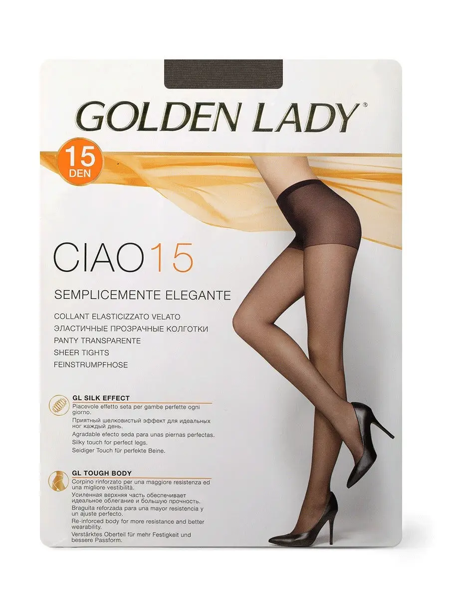 Тонкие эластичные колготки тм GOLDEN LADY CIAO 15 den с шортиками и комфортными швами.