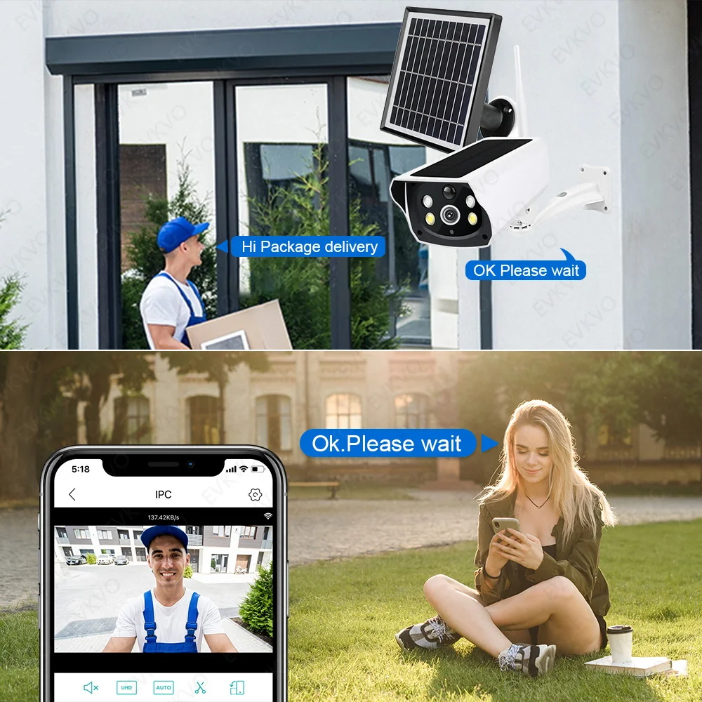 Встроенный водонепроницаемый микрофон и динамик, независимо от того, как далеко, вы можете легко говорить через ip-камера на солнечной батарейке.