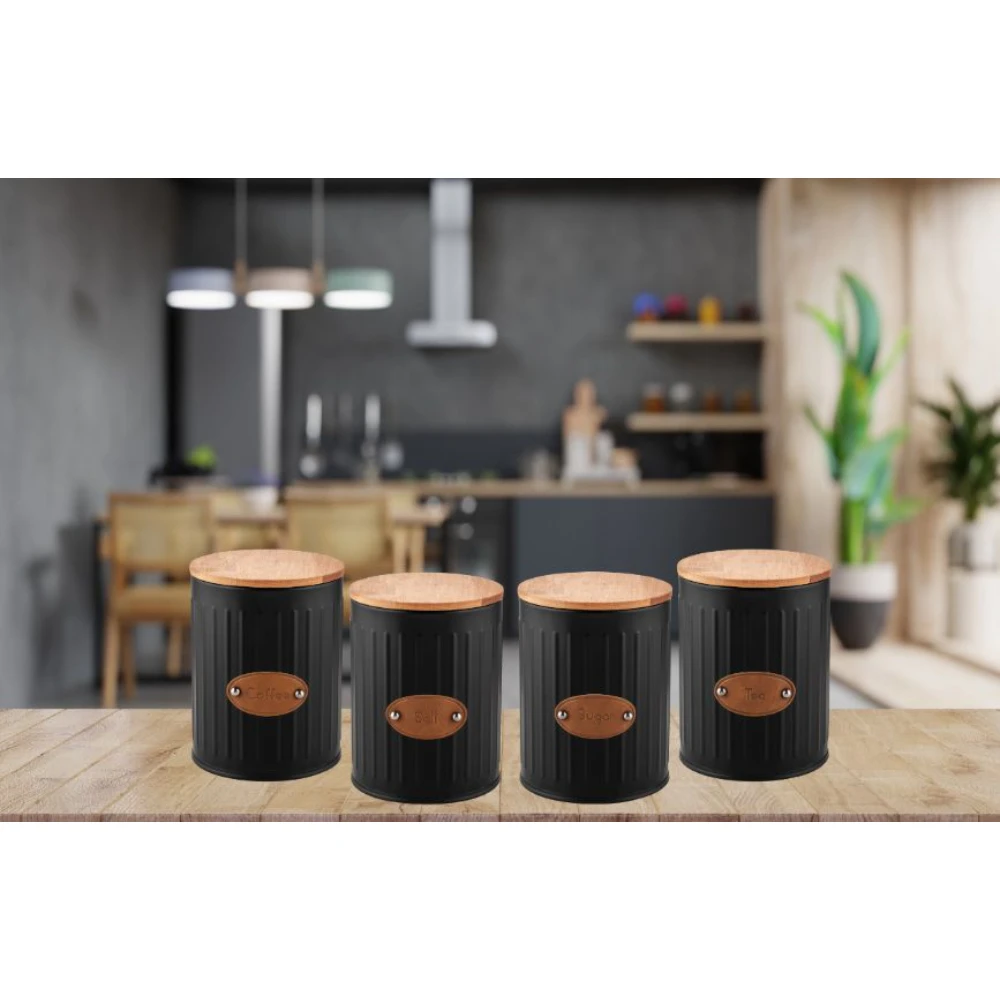 Чай кофе сахар 2 Lt. металлическая деревянная крышка специй набор из 3