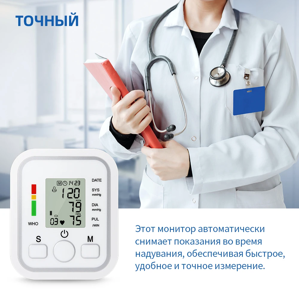ТОЧНОСТЬ: этот монитор автоматически снимает показания во время надувания, с большей точностью и меньше зависит от дыхания или движений во время измерения.