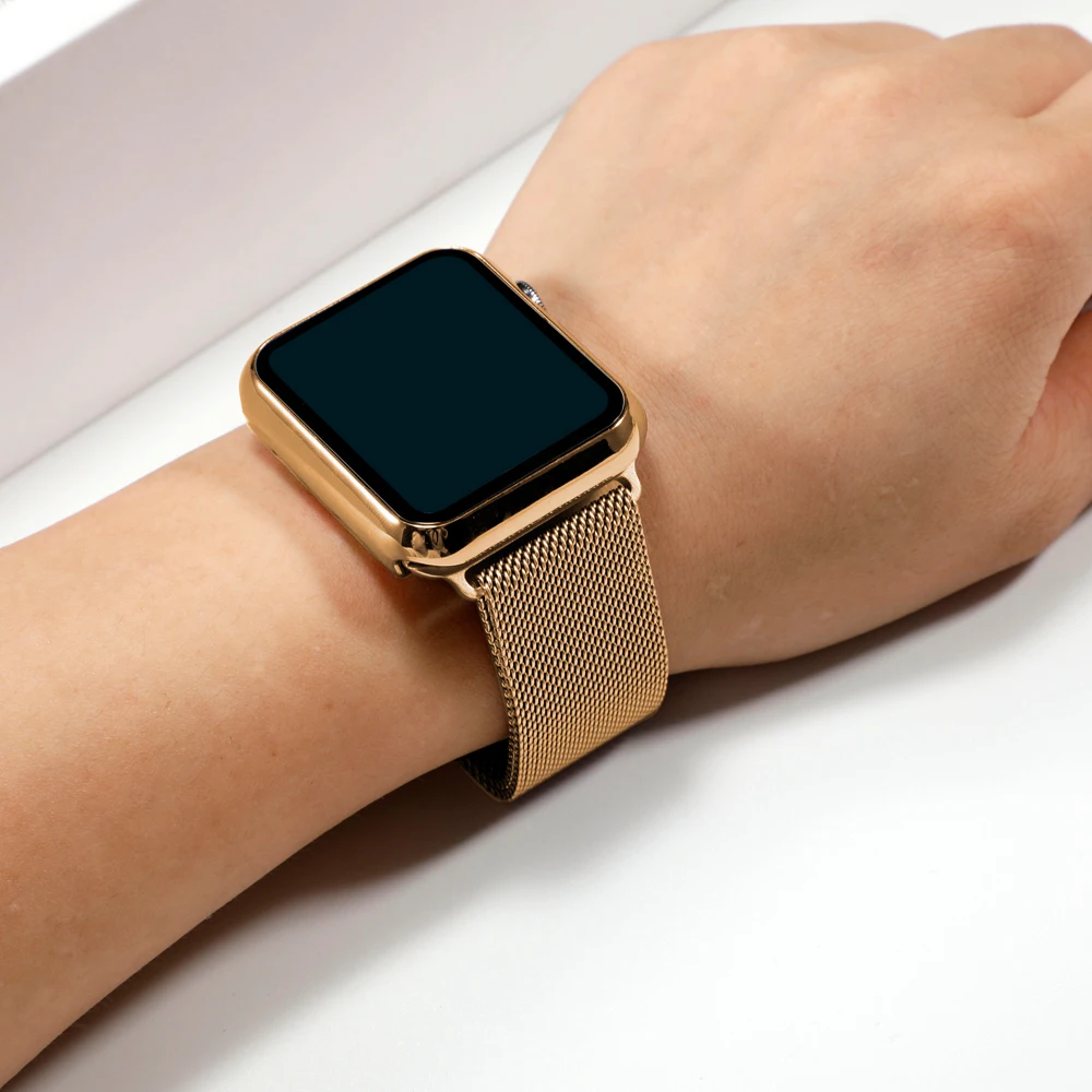 Чехол + ремешок для Apple Watch Band 4 44 мм 40 мм iwatch 3 band 42 мм 38 мм Миланская петля браслет + чехол для часов из нержавеющей стали ремешок для часов серии 7 6 5 4 3 2 1 se