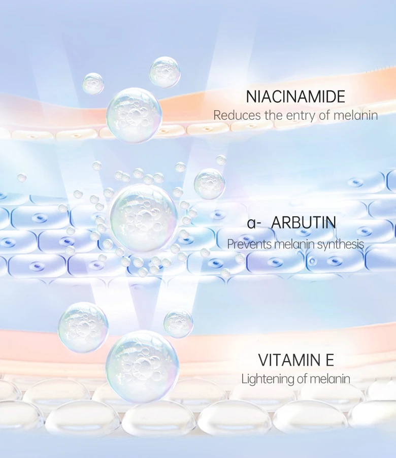 The combination of niacinamideand alpha-arbutin in Ultra Glowing Skin Whitening Facial Cream possess dual function. Both of niacinamideand alpha-arbutin can potently whiten skin. Arbutin can inhibit active tyrosinase in skin cells while niacinamide can steadily whiten skin. Whitening factors are prepared by coating technology in this whitening cream. Once applied on skin, whitening factors are soon absorbed by skin. Skin visibly becomes brighter and whiter in few weeks.