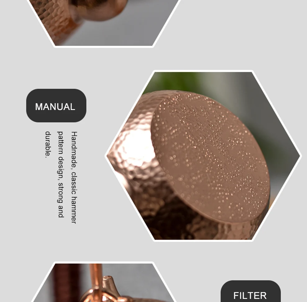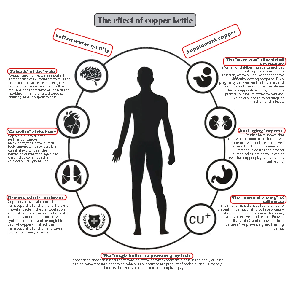 ——The copper pot will appear black spots after a period of use, which is an oxidation phenomenon, not a quality problem, and does not affect normal use and water quality.