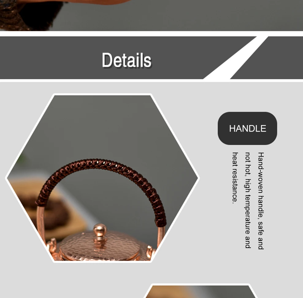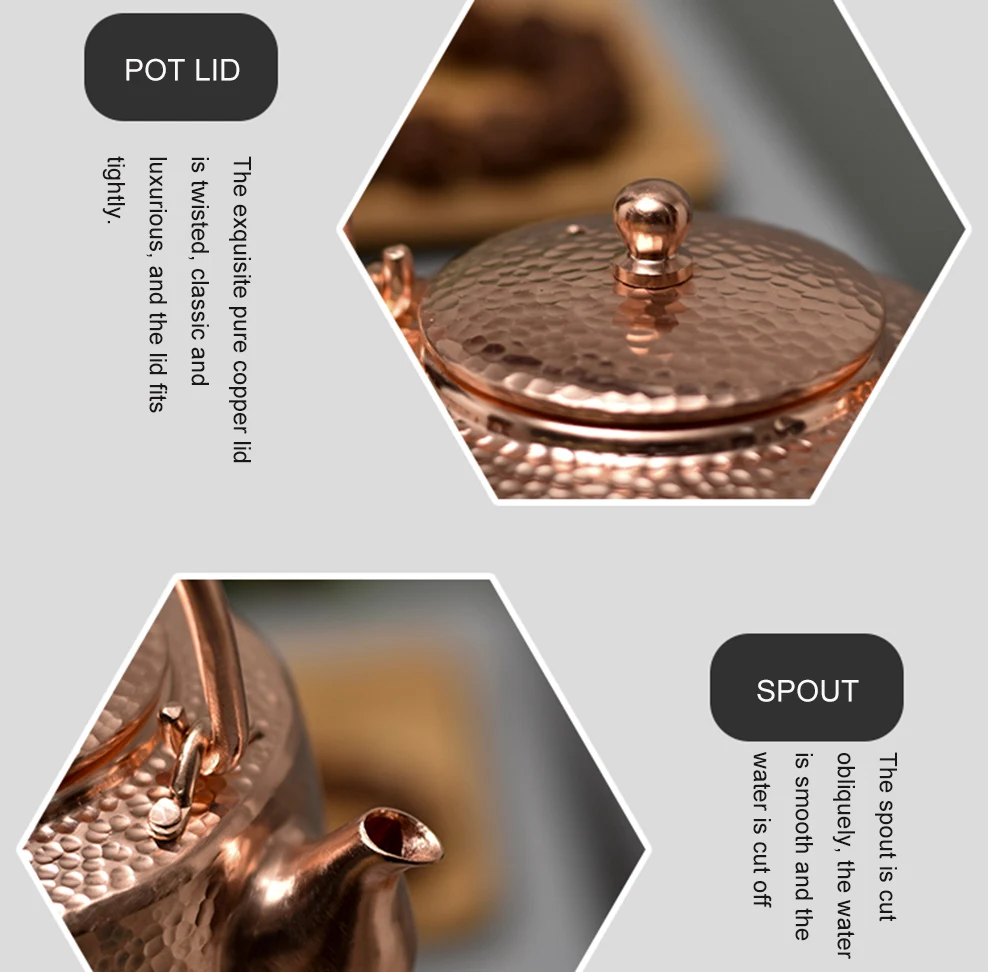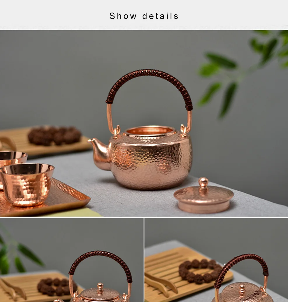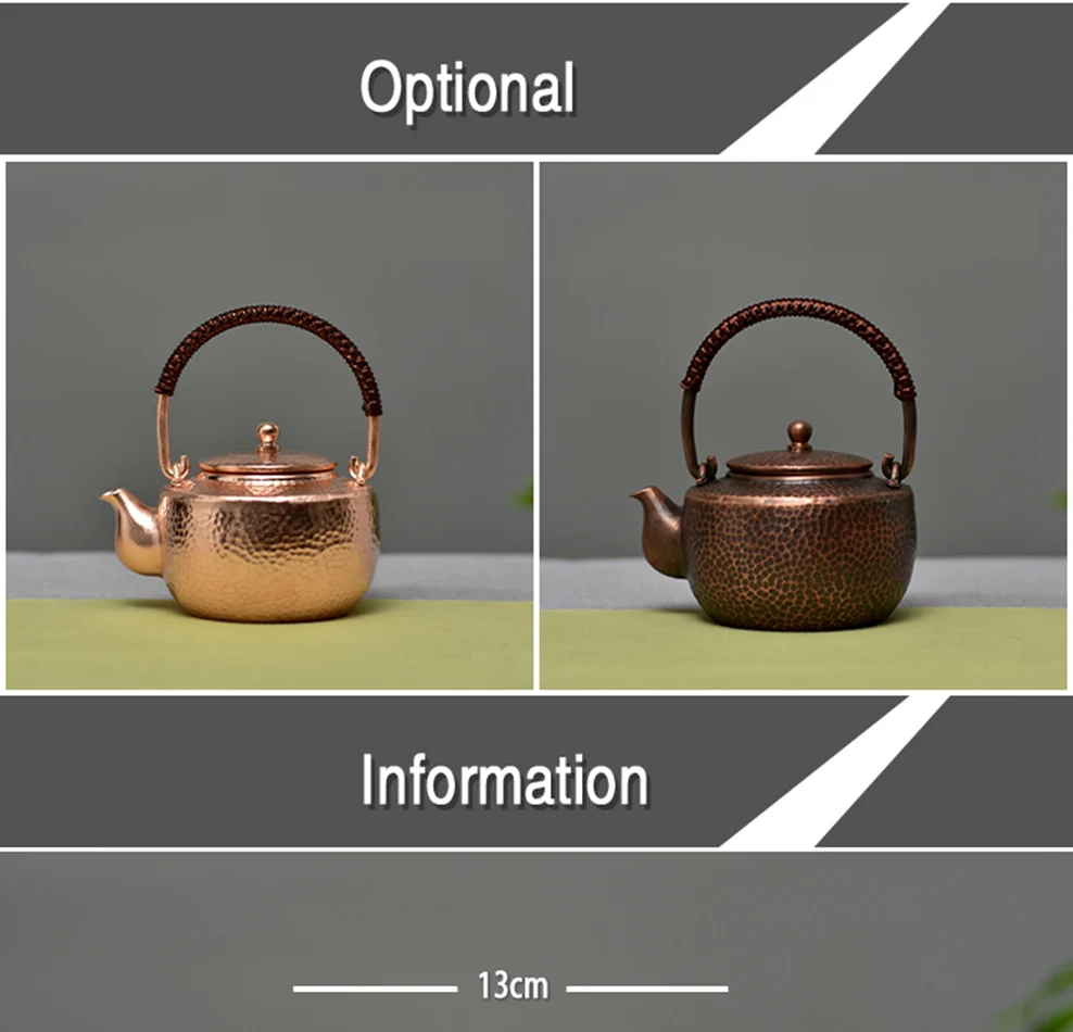 Pure Handmade Boiling Kettle 450MLPure Copper Teapot Lifting Beam Copper Pot Health Tea Infuser Kung Fu Tea Set For Brewing Tea