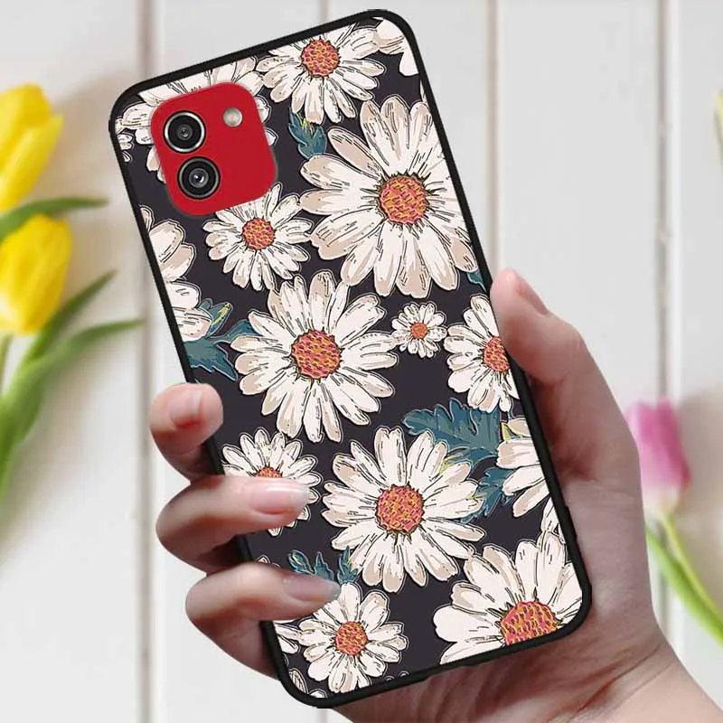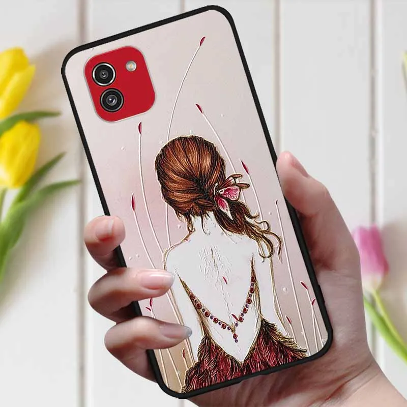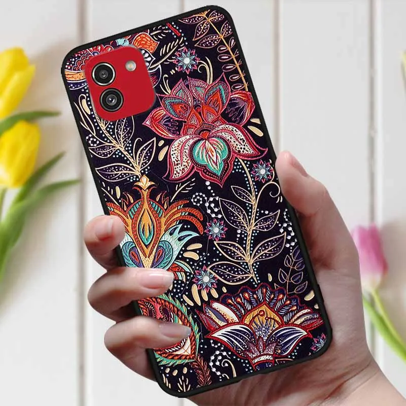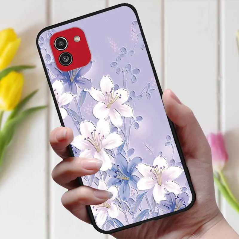 3D чехол с рельефным цветком для Samsung Galaxy A03, чехол A 03, милый рельефный чехол для Samsung A03 A035F, чехол для телефона Galaxy A04, чехол