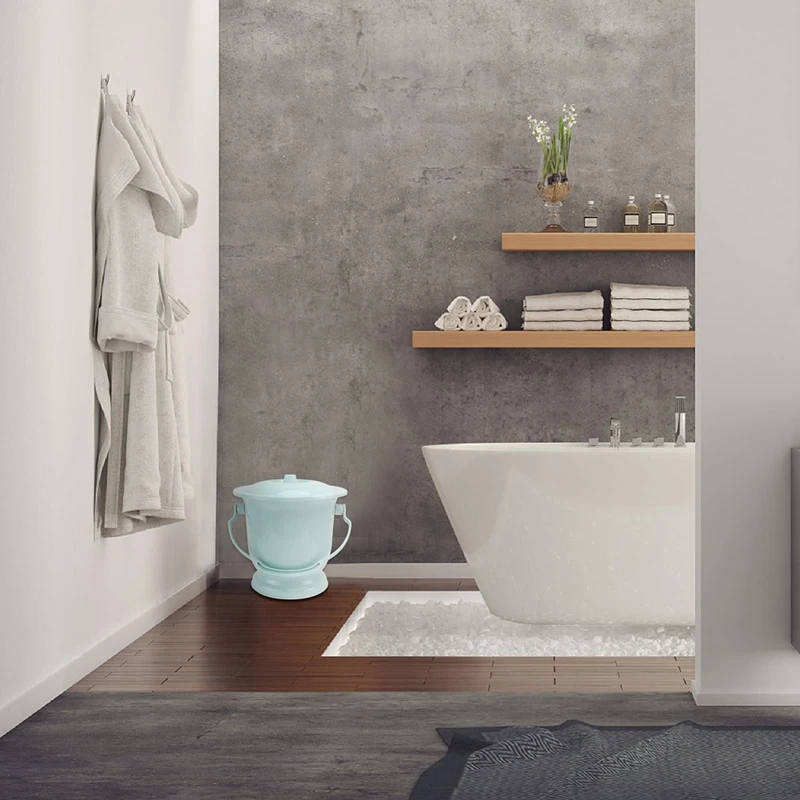 Высокая термостойкость, можно стерилизовать горячей водой при температуре 100 °C. Камерный горшок с крышкой.