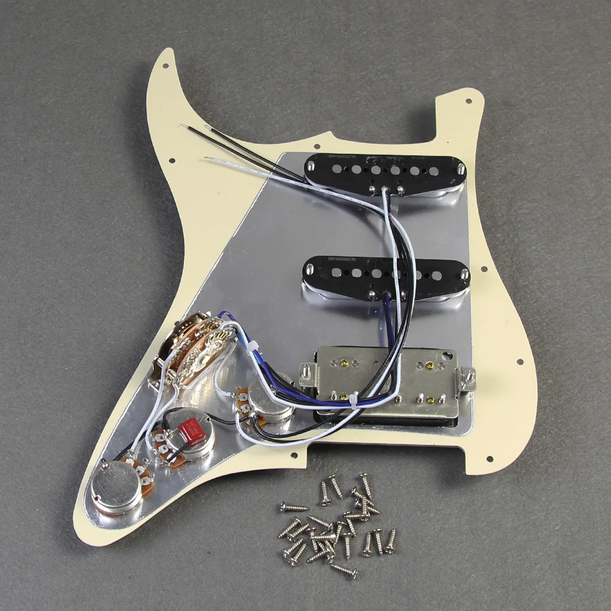 🎵Предварительная проводка в комплекте с 2 однокатушечными пикапами и 1 humbucker пикапом сAlnico 5Магнит, 2T1V ручки управления, 5-позиционный переключатель.