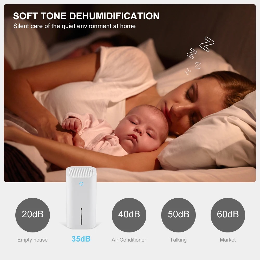1.Небольшой домашний осушитель воздуха: эффективное осушение, очистка воздуха, улучшение окружающей среды дома, и держать Вас и Вашу семью вдали от вреда, вызванного влажностью.