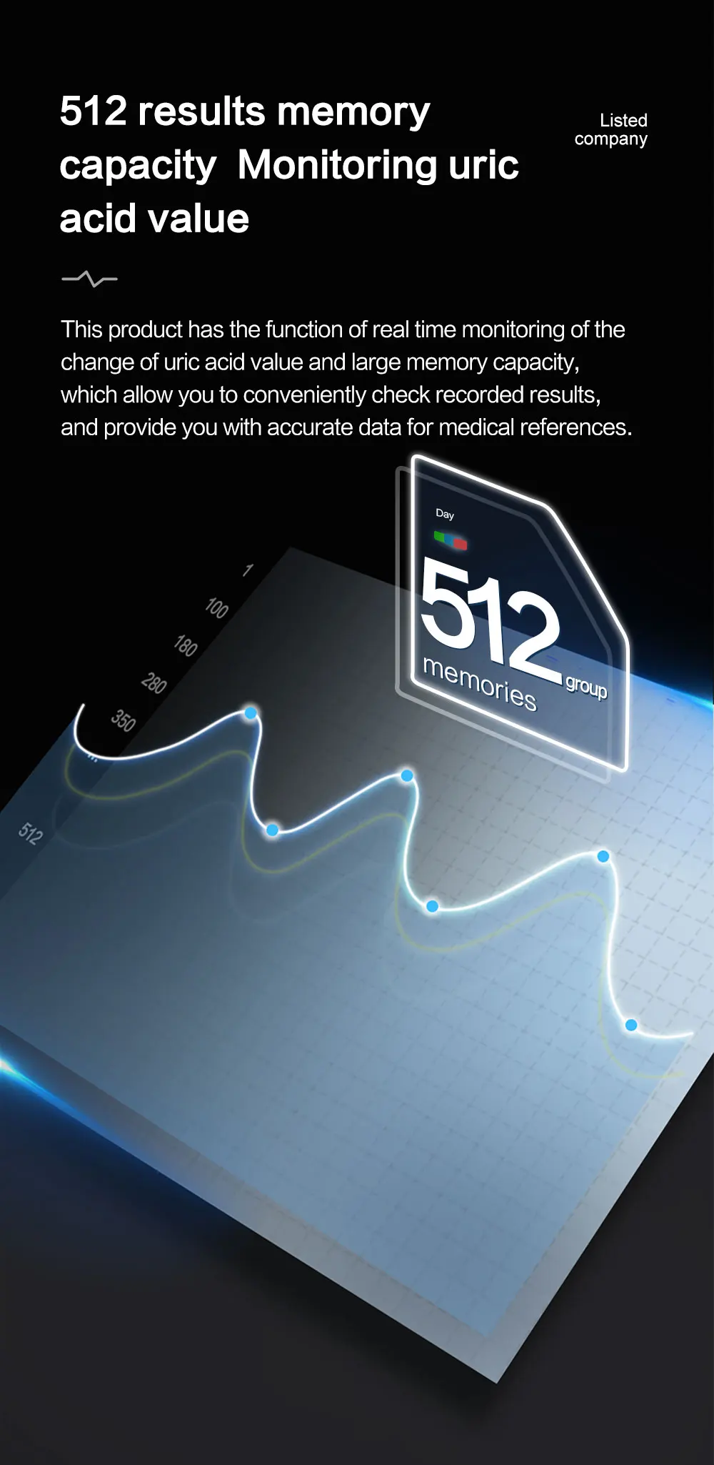 512 групп значений памяти, мониторинг изменений мочевой кислоты в реальном времени