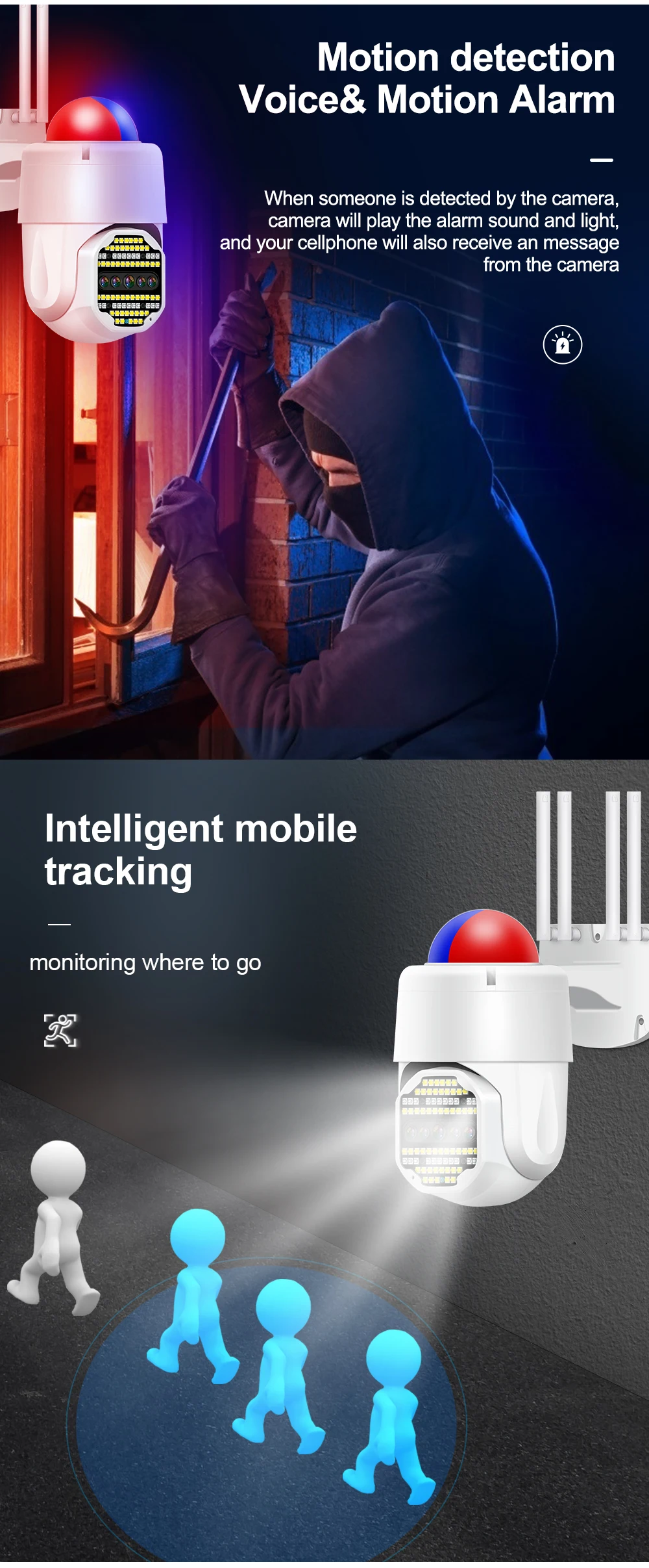 -Интеллектуальное оповещение: ПИР срабатывает с сигнальным снимком, push-уведомления приложения и запись будильника