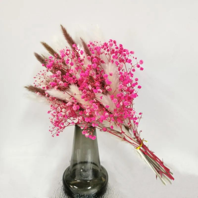Посылка включает в себя:(20 г Gypsophila + 30pcspampas)/Букет красочных реальных сохраненных цветов