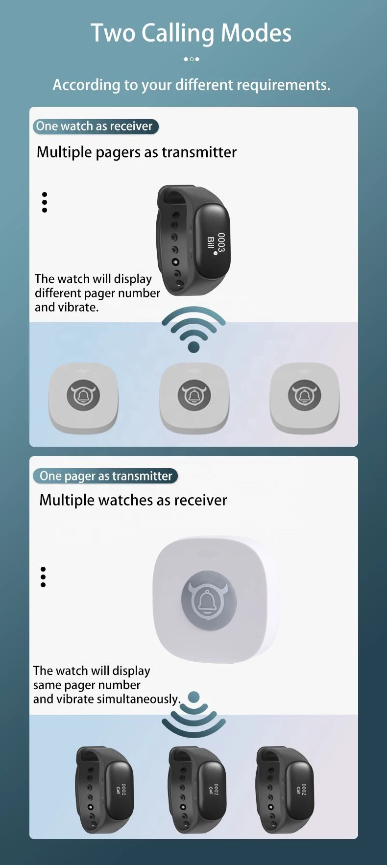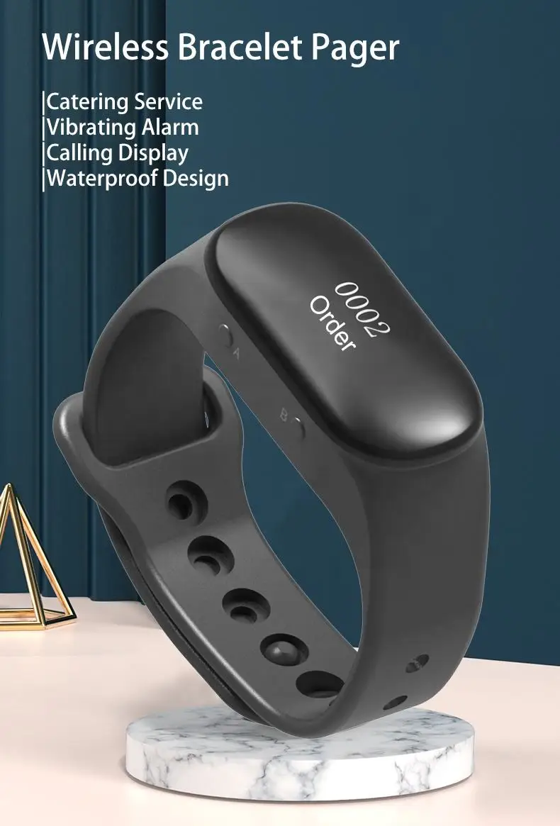 4. Пейджер браслета может широко использоваться в больницах, банках, гостиницах, ресторанах, кафетериях, кафе, банных центрах, KTV, производственной линии и так далее.